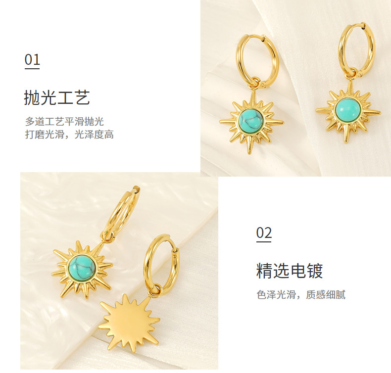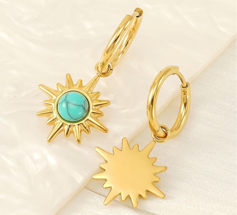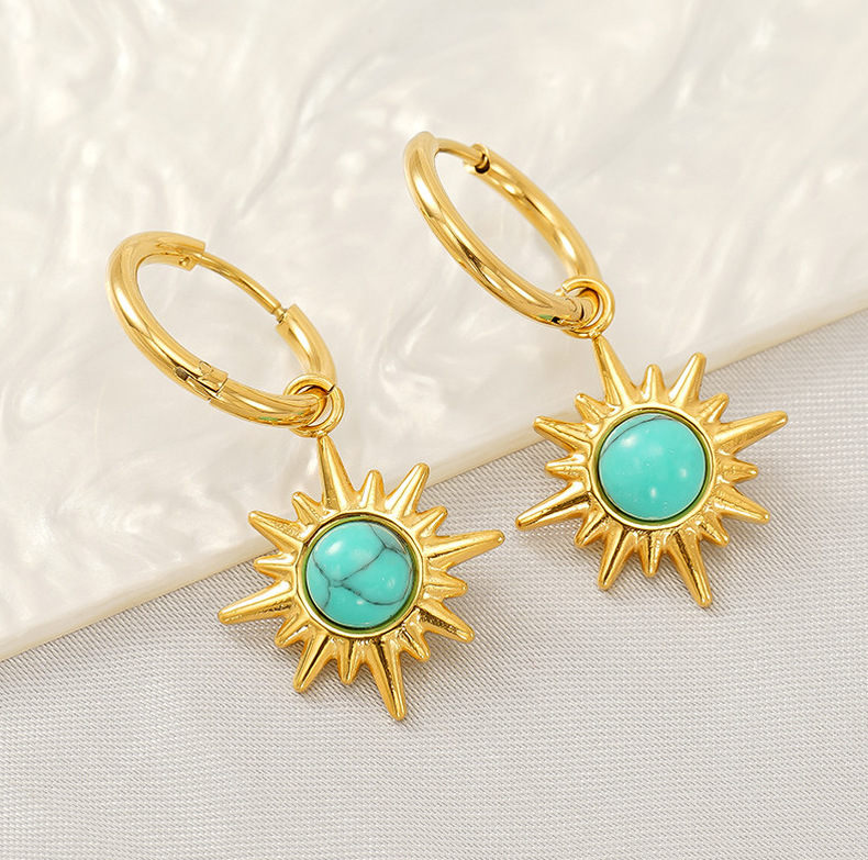 Pendientes de turquesa azul de alta calidad de estilo INS europeo y americano para mujer Pendientes de acero inoxidable de estrella de ocho mang retro dorado de 18 quilates al por mayor