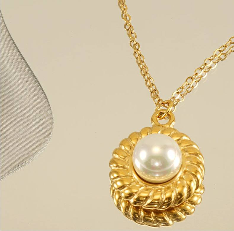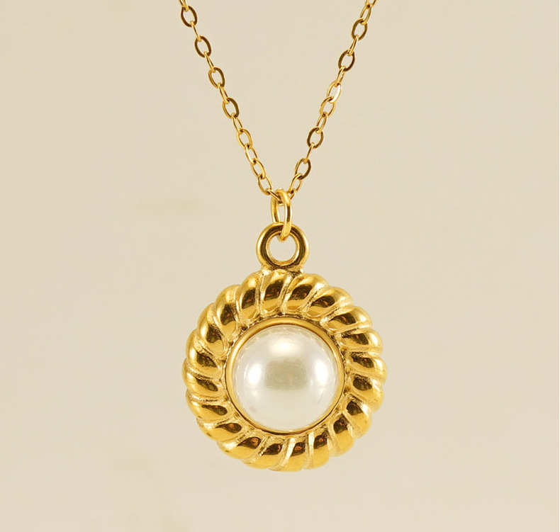 Transfronterizo europeo y americano Acero inoxidable 18K oro diseño sentido del sol flor perla collar titanio acero moda nuevo cuello para las mujeres