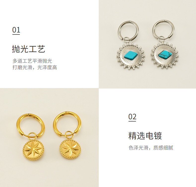 Pendientes de girasol de acero inoxidable estilo étnico transfronterizo azul turquesa Polka Dot retro pendientes bohemios de estilo nacional para las mujeres
