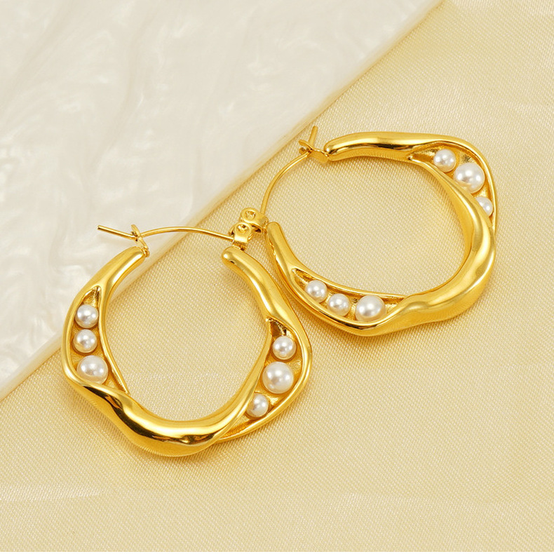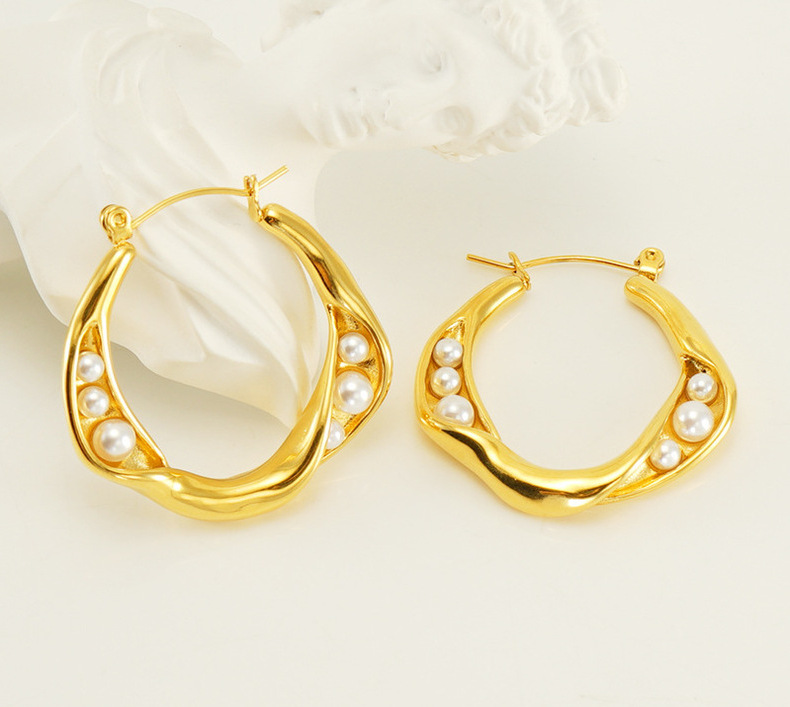 Pendientes de círculo geométrico de diseño avanzado de acero inoxidable europeo y americano pendientes de perlas vintage de mujer pendientes de acero de titanio pendientes