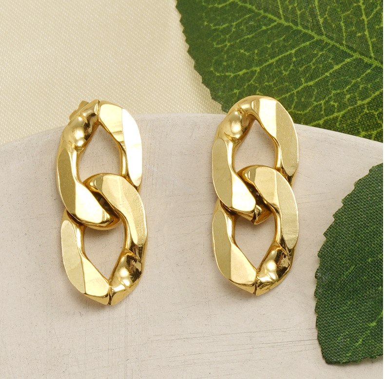 Transfronterizo europeo y americano nuevo irregular galvanoplastia 18K oro titanio acero pendientes de moda nicho ins8 pendientes