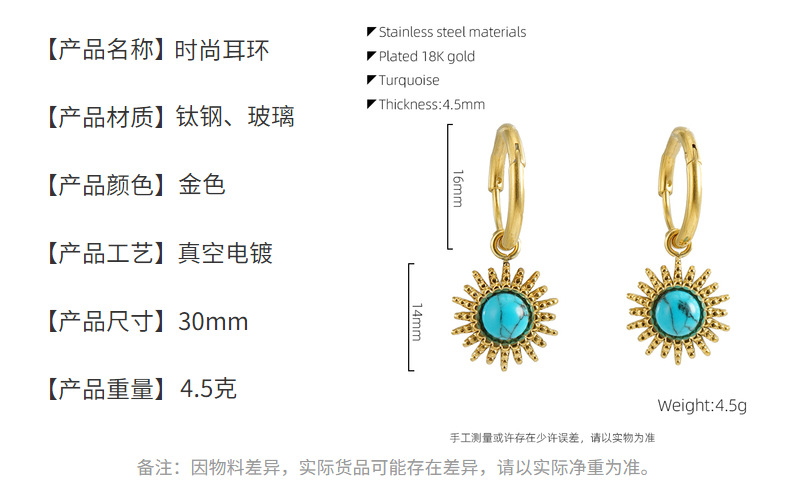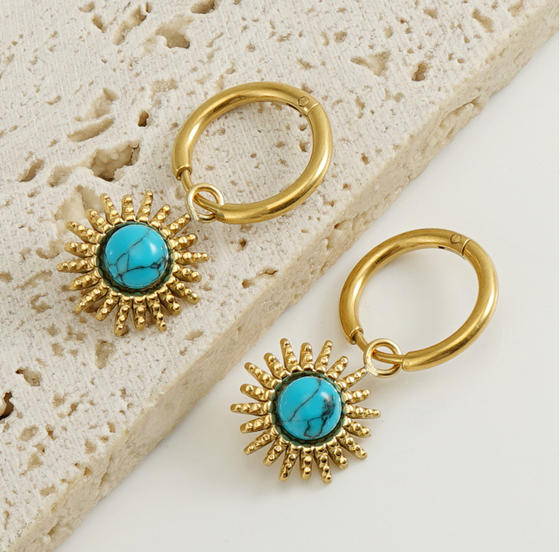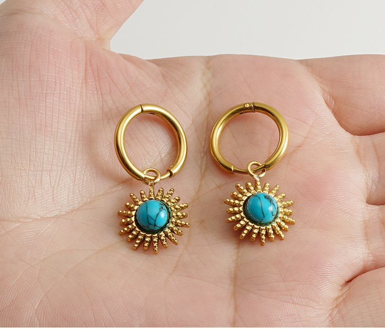 Nuevos aretes de acero inoxidable transfronterizo de Europa y América, aretes de titanio de turquesa azul, diseño simple de aretes retro de nicho
