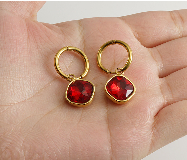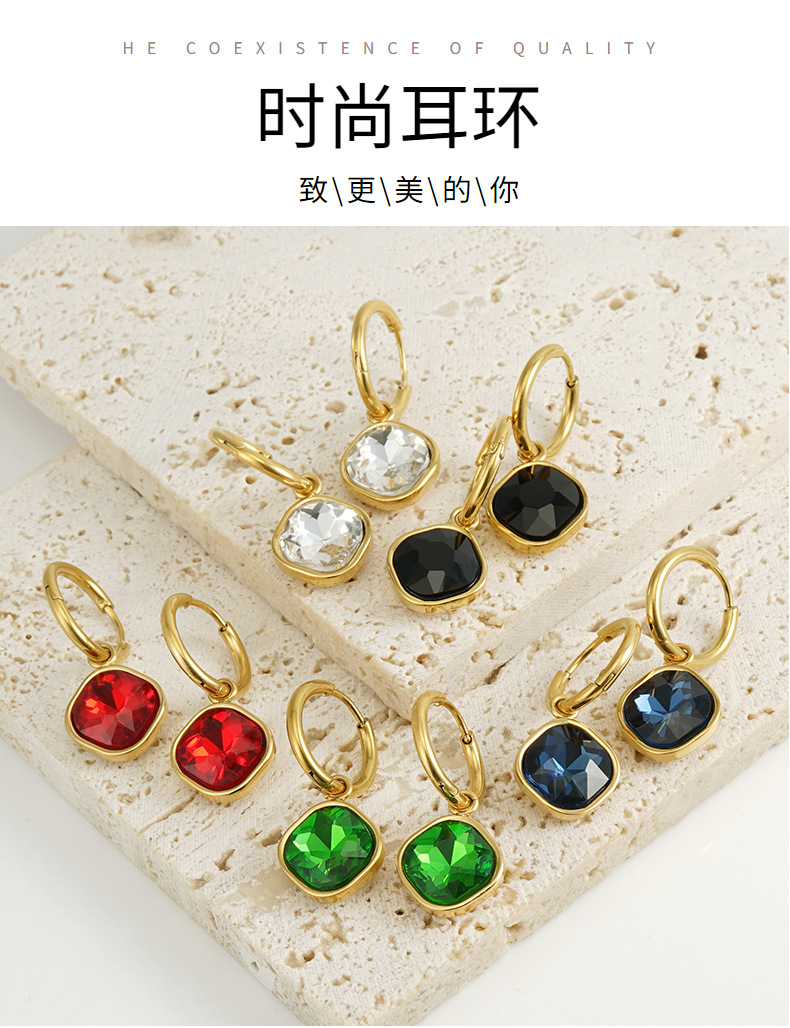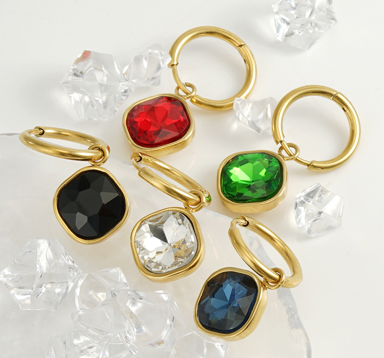 Pendientes de circón con incrustaciones de acero inoxidable de moda europea y americana transfronteriza 18k pendientes de diamantes de acero de titanio de oro pendientes al por mayor