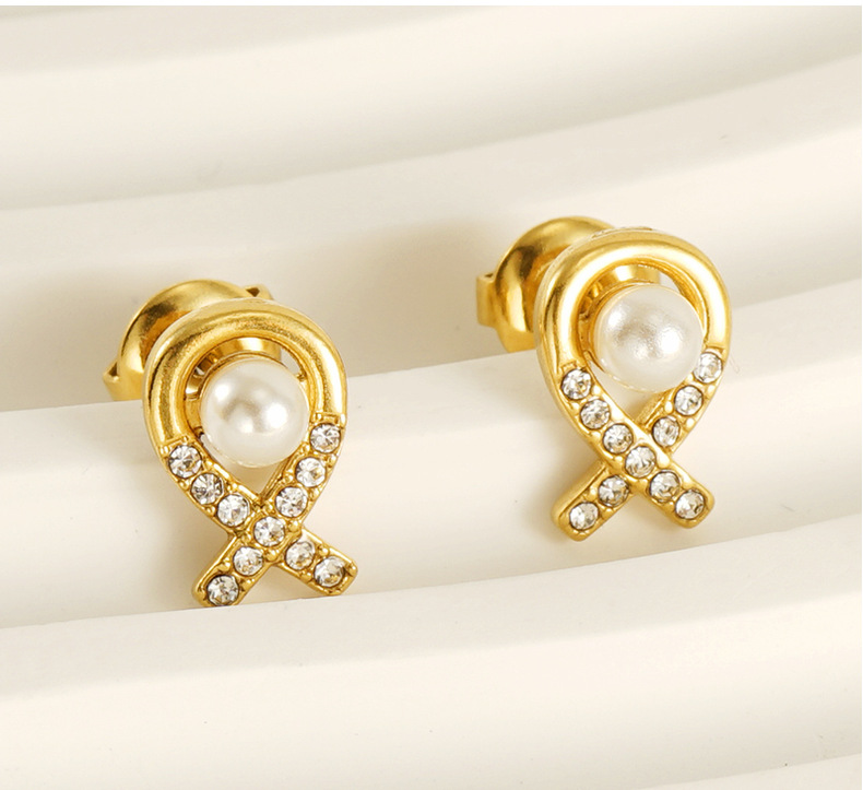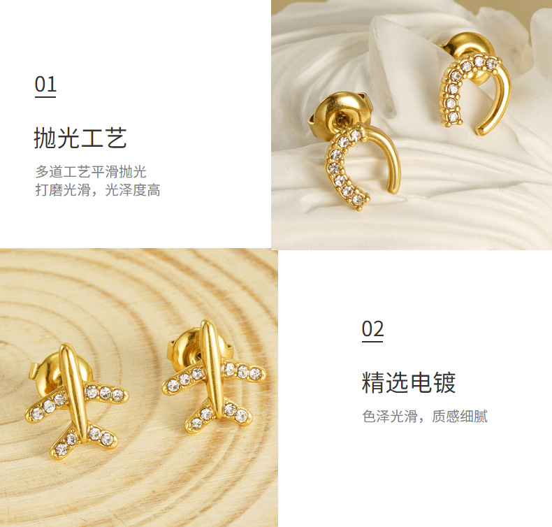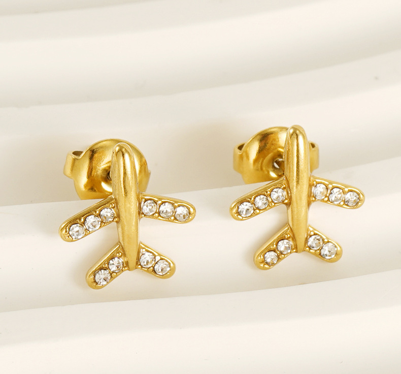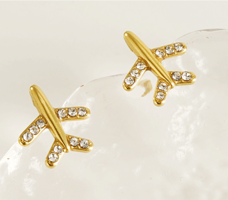 Pendientes de perlas elegantes simples de acero inoxidable 18K para mujeres pendientes de aviones tridimensionales de diamante de acero de titanio de moda de estilo europeo y americano