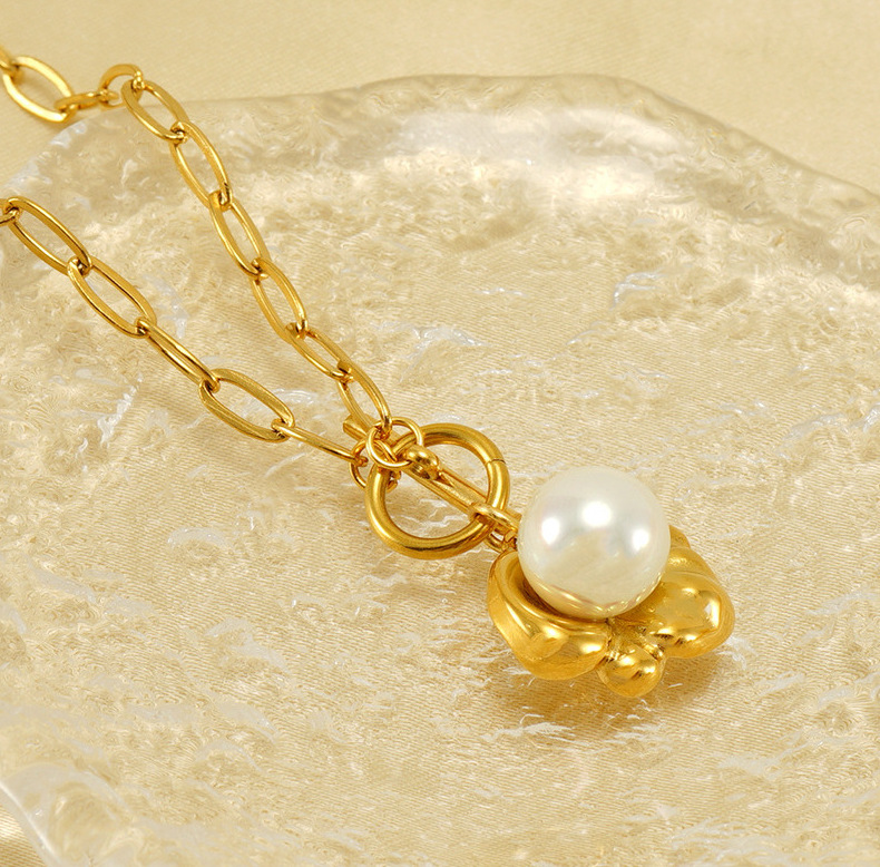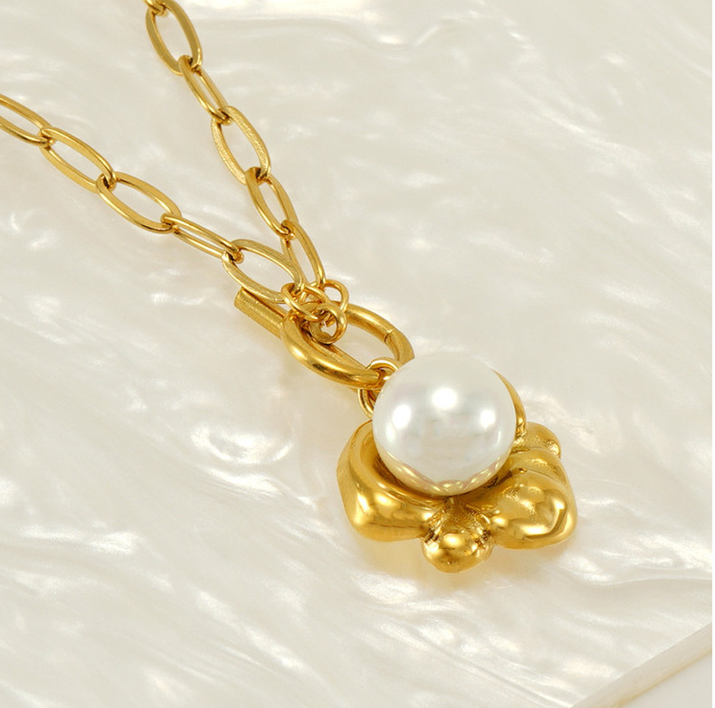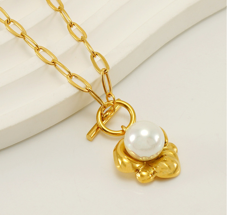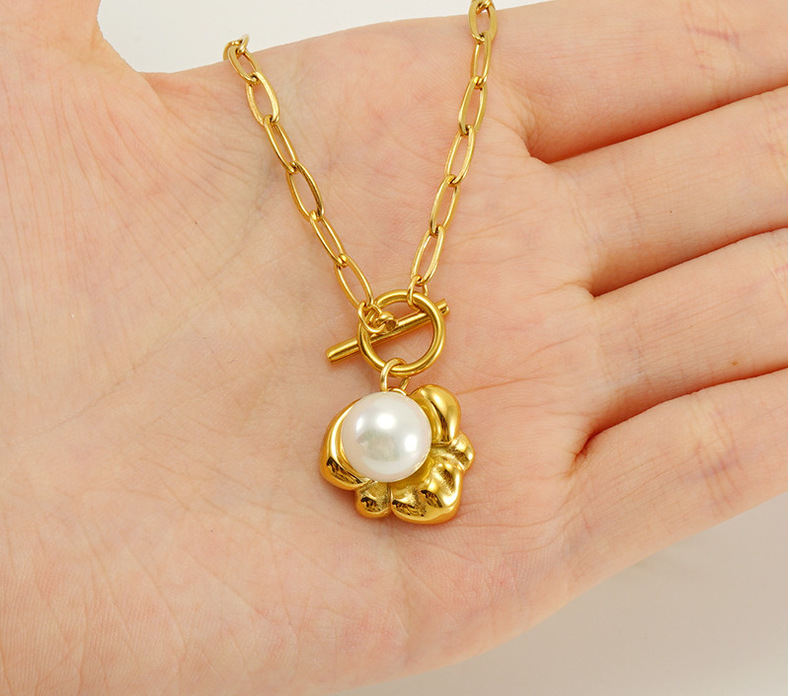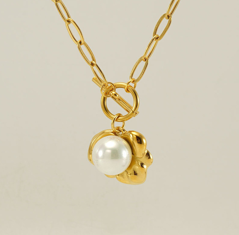 Verano transfronterizo nuevo collar de perlas elegante de las mujeres de alto grado irregular de acero de titanio colgante Cadena de clavícula al por mayor