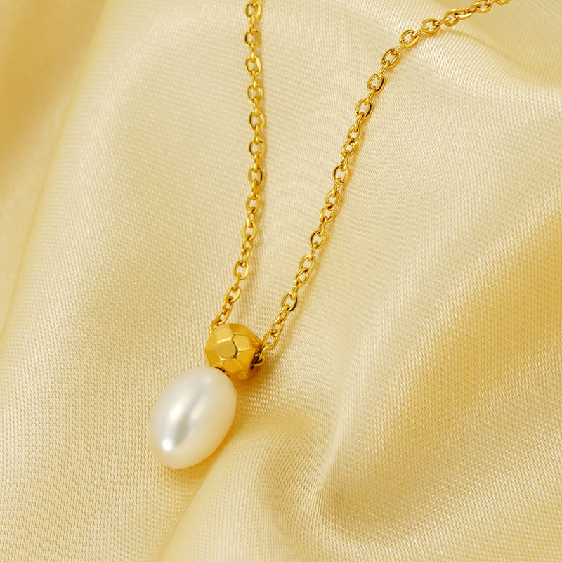 Transfronterizo europeo y americano nuevo collar de perlas de acero inoxidable de moda para mujer todo fósforo titanio acero textura luz collar de lujo en stock al por mayor