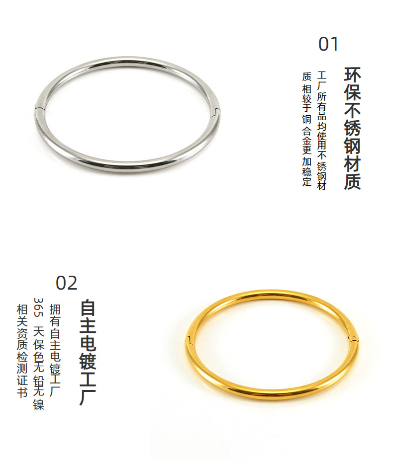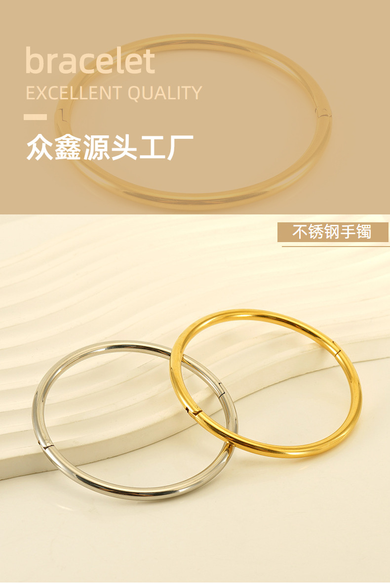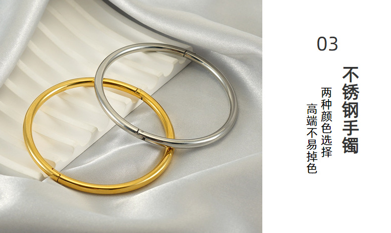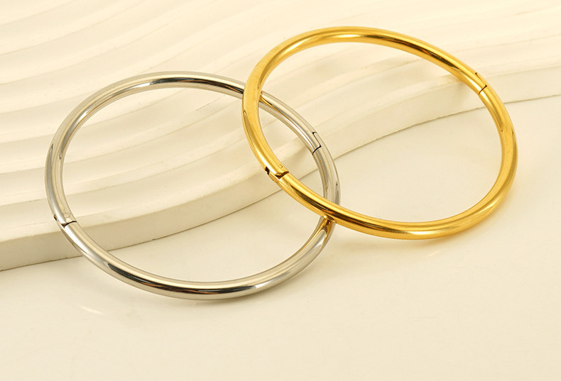 Pulsera redonda de acero de titanio con anillo liso y brillante, diseño de nicho simple, pulsera versátil de acero inoxidable, joyería de mano que no se decolora