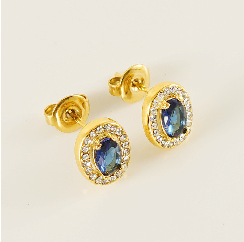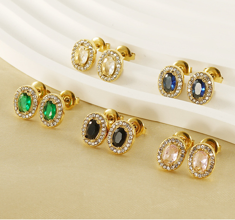 Oval con incrustaciones de circón nicho diseño pendientes no se desvanece Pendientes de acero inoxidable estilo europeo y americano INS