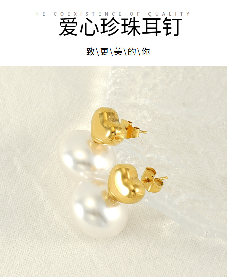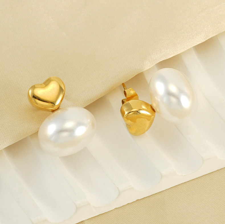 Francés retro de acero inoxidable precioso perla pendientes de titanio de acero diseño chapado en oro elegante todo-fósforo pendientes simples para las mujeres