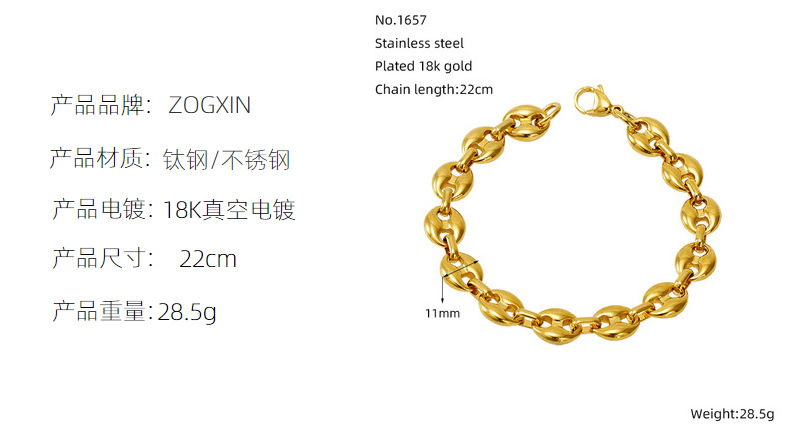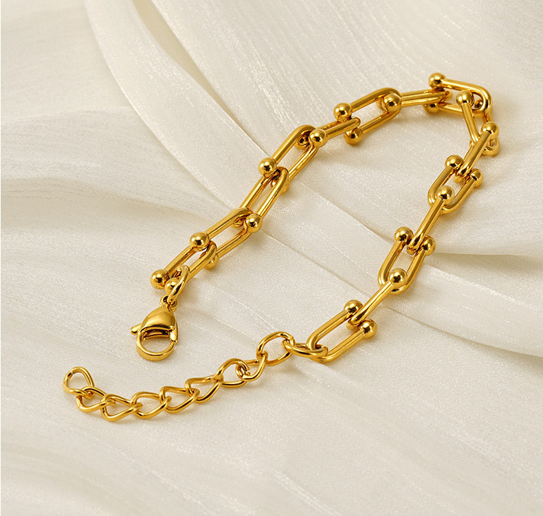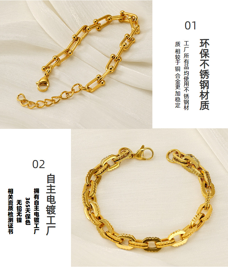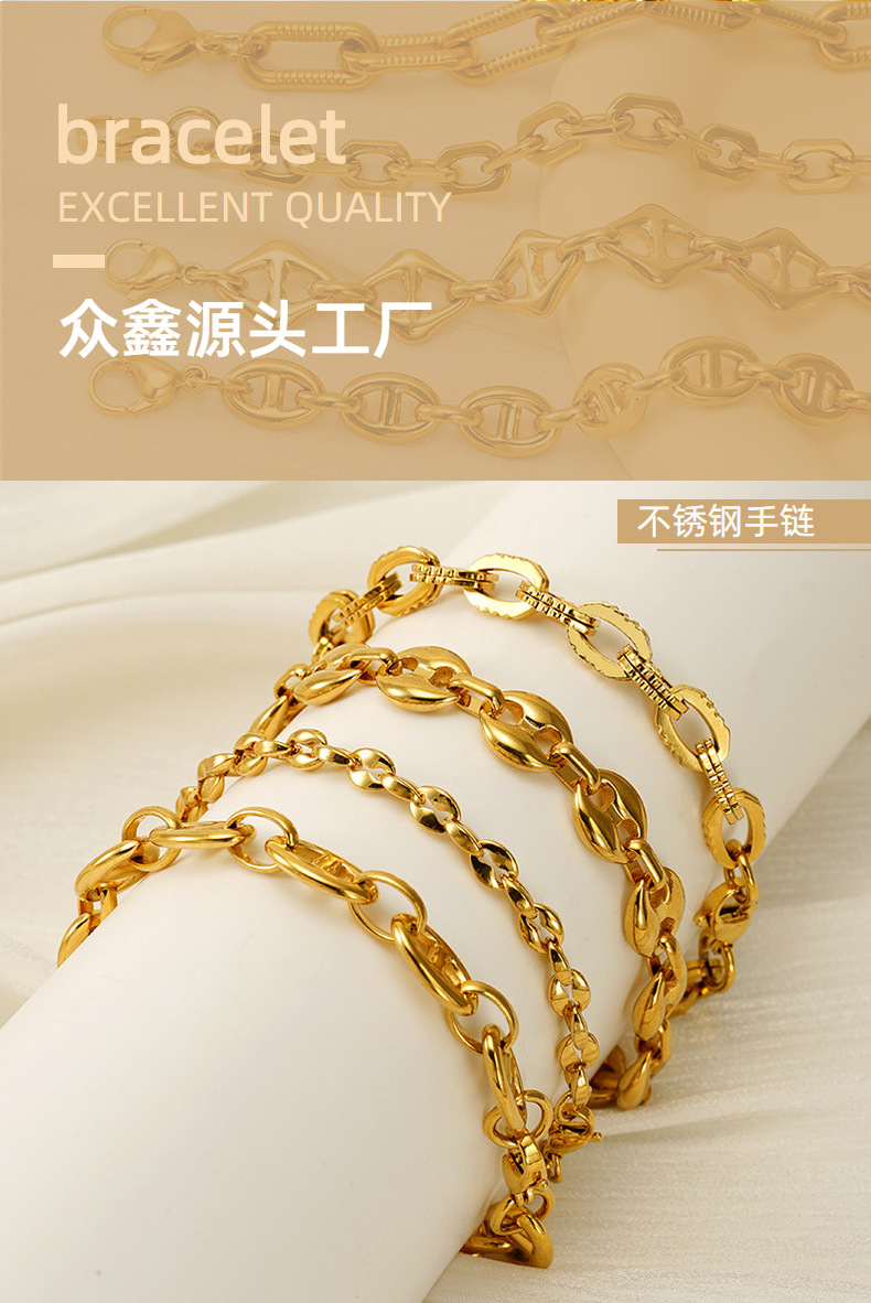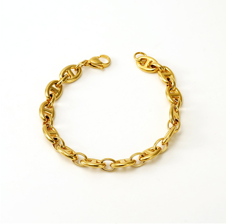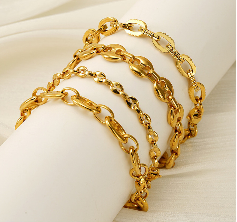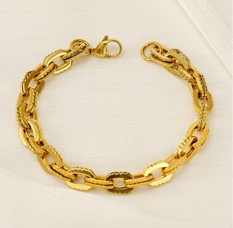 Muñeca de acero inoxidable hip-hop de moda europea y americana, diseño exagerado de acero de titanio chapado en oro, joyas de mano unisex