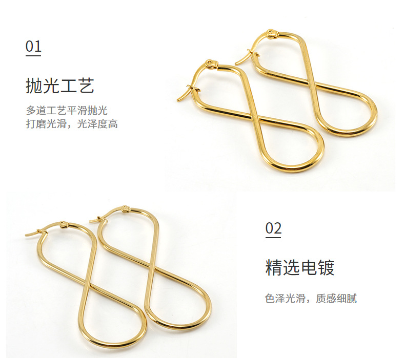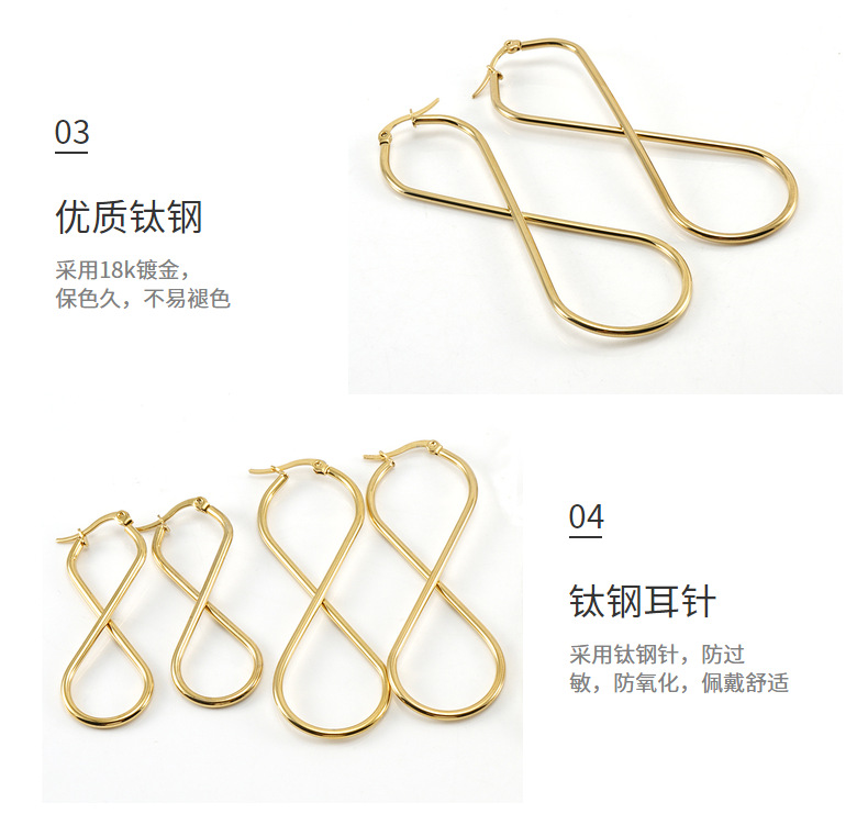Pendientes europeos y americanos de acero de titanio en forma de 8 japoneses y coreanos línea redonda de las mujeres elegantes novias estilo bar Net joyería roja joyería de las mujeres