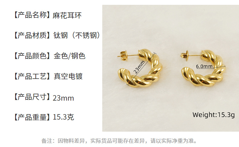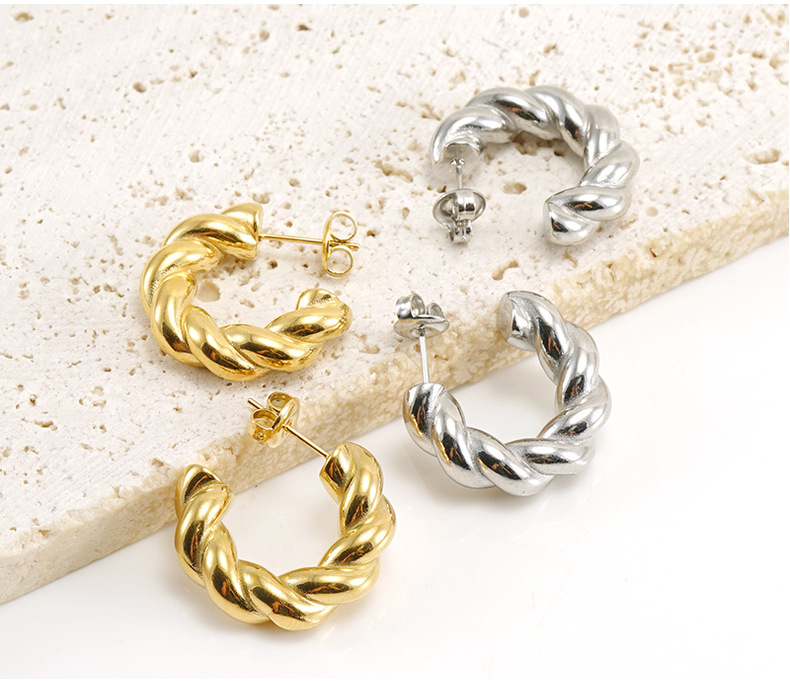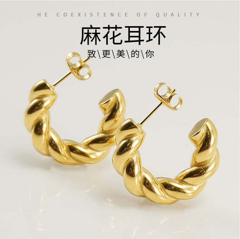 Pendientes de acero de titanio de giro europeo y americano transfronterizo hembra vacío galvanoplastia 18K moda de acero inoxidable torcido pendientes gruesos hembra