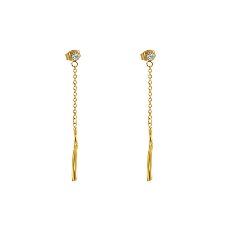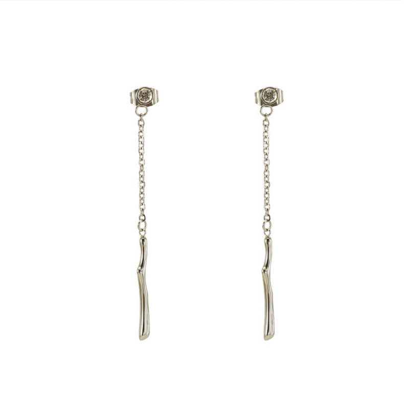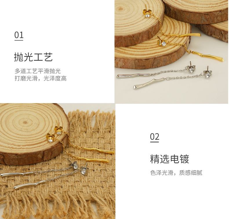 Nueva borla de acero inoxidable de bambú pendientes femeninos europeos y americanos elegantes ins luz pendientes de diamantes de lujo pendientes al por mayor