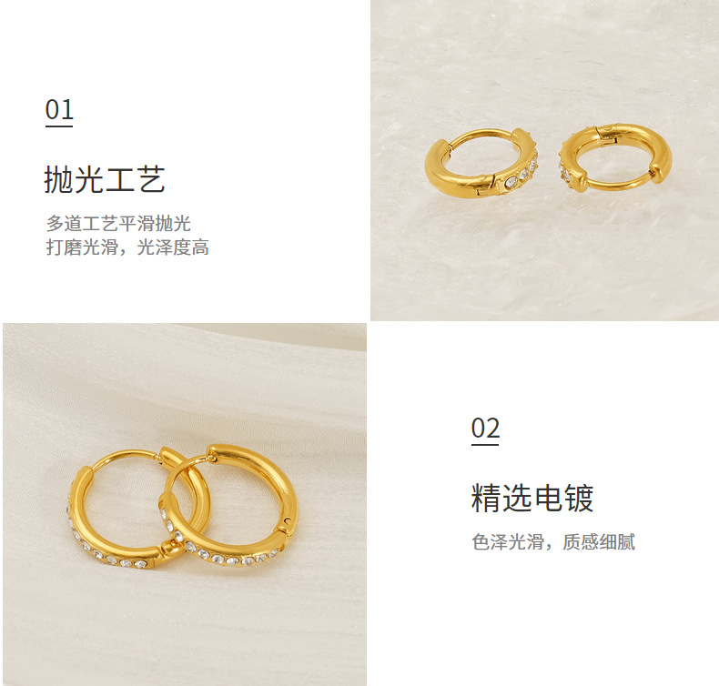 Pendientes de acero de titanio de estilo europeo y americano de oro de 18 quilates para niñas, lujo ligero de alta calidad, botones de oreja que no se desvanece, pendientes de acero inoxidable para mujeres