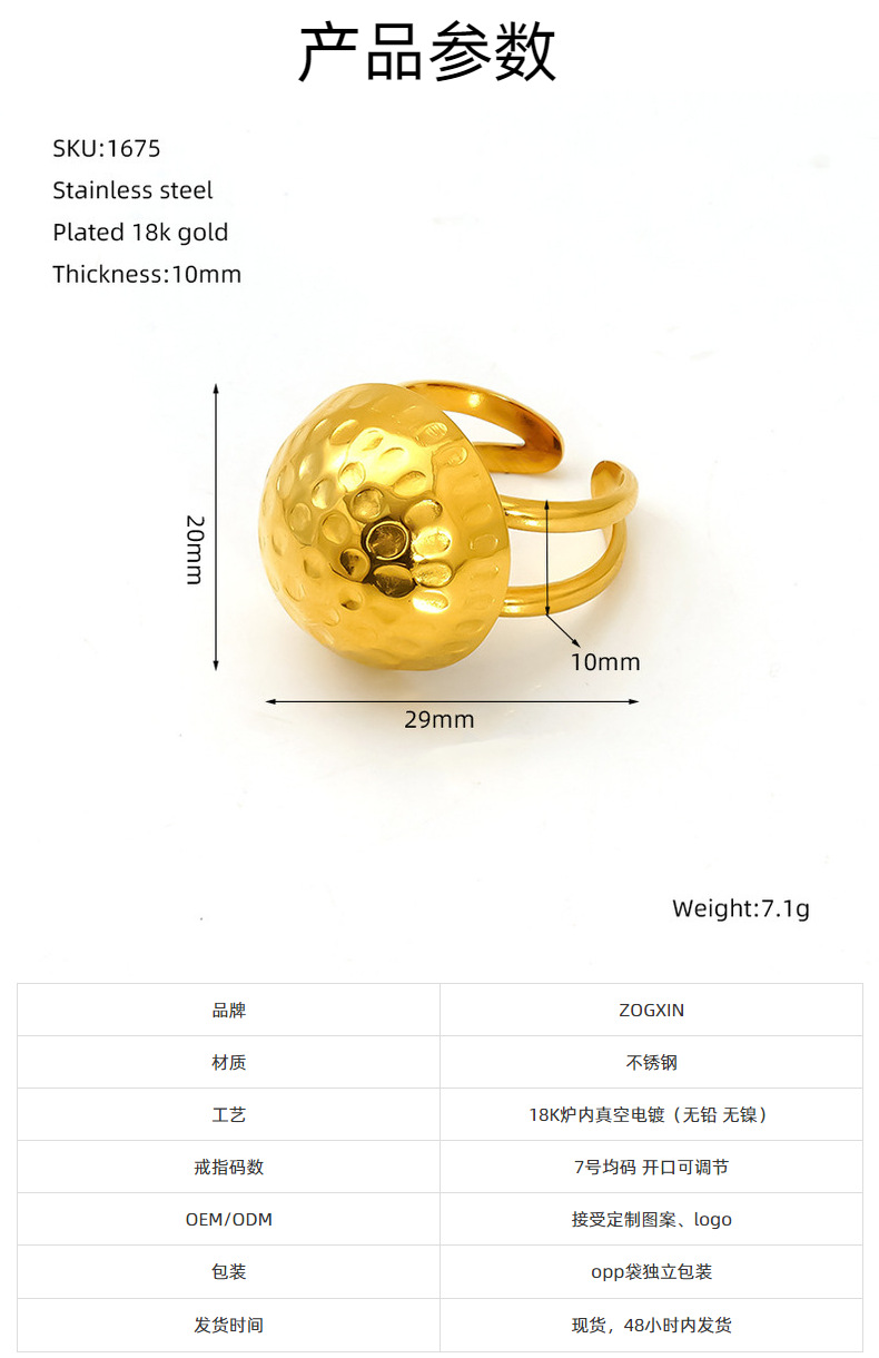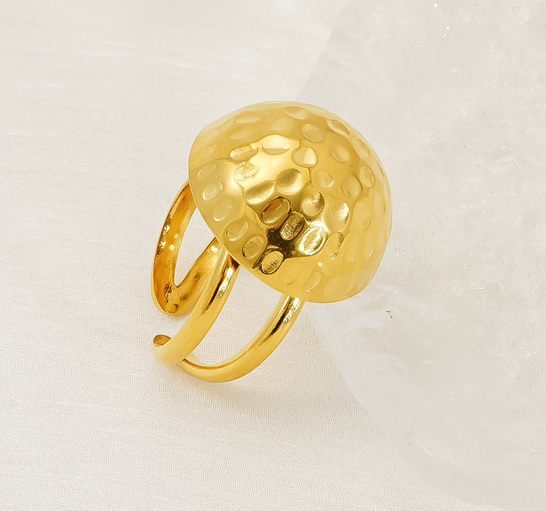 Nuevo anillo de hemisferio de patrón de martillo regordete de acero inoxidable francés para mujer, color simple, personalidad, anillo ajustable de moda
