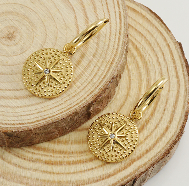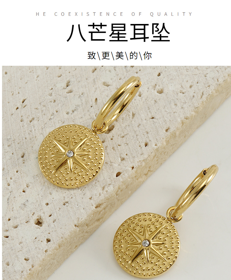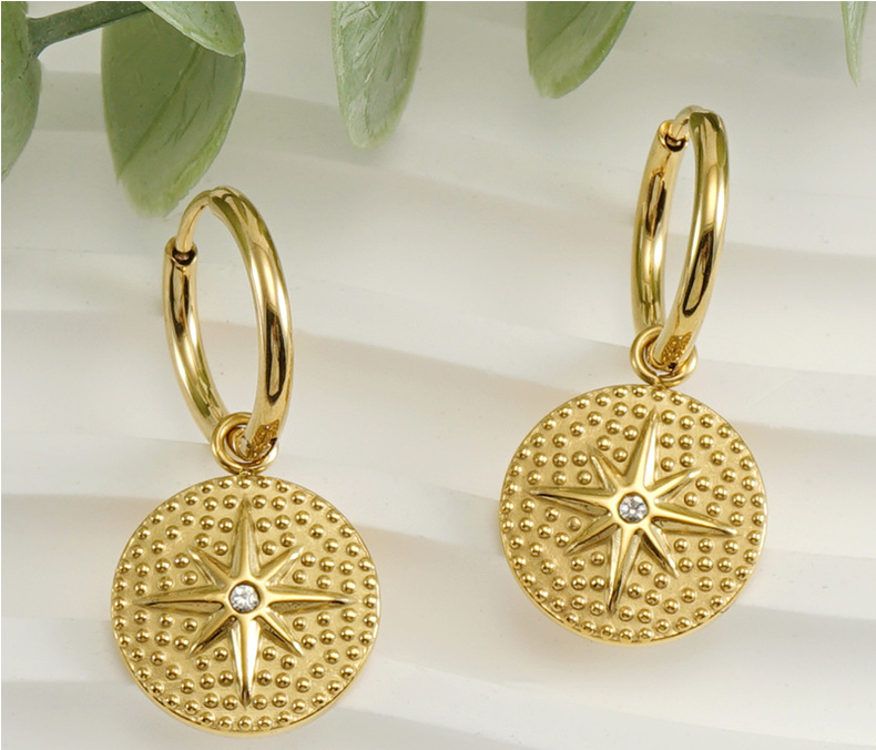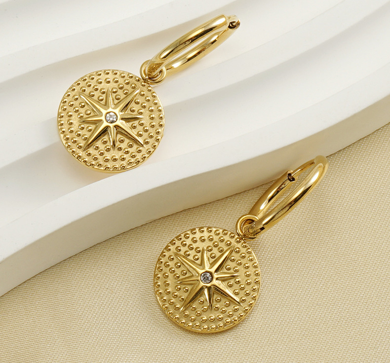 Cruz-frontera europea y americana de acero inoxidable ocho Awn Estrella diamante pendientes mujer 18K oro titanio acero pendientes de moda femenina al por mayor