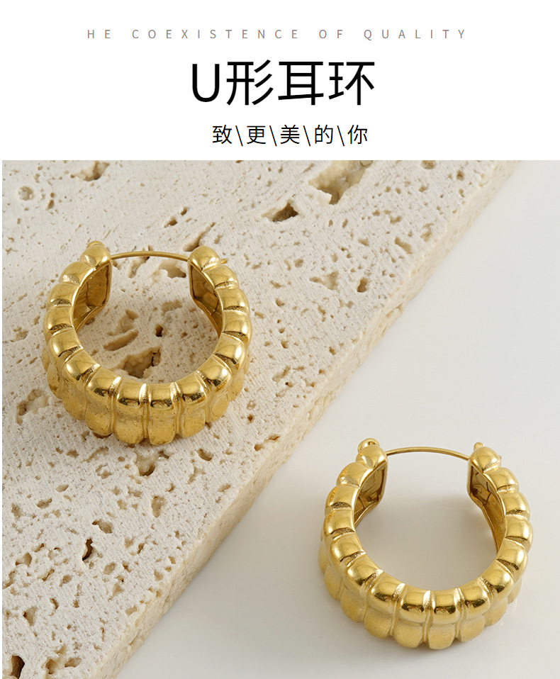Acero inoxidable transfronterizo europeo y americano moda nicho geométrico en forma de U pendientes titanio acero 18K oro Internet celebridad pendientes alfiler para las mujeres