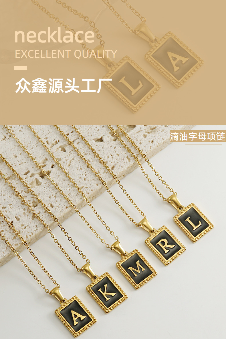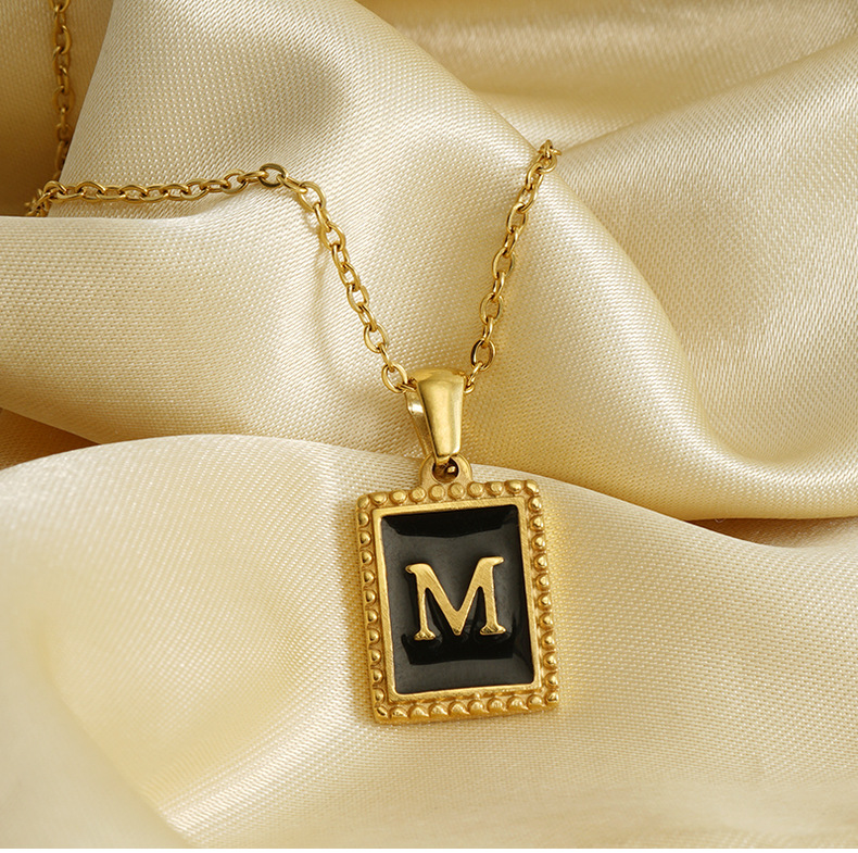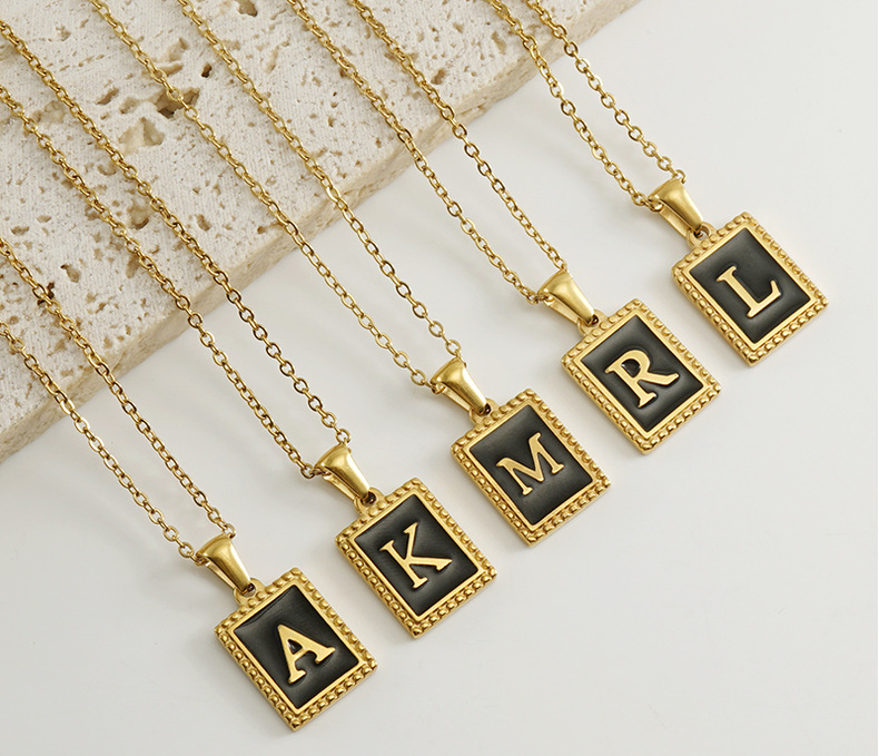 Collar de Acero Inoxidable con Letras, Estilo Europeo y Americano, Simple, Chapado en Oro de 18K, Accesorios de Moda, Colgante Cuadrado de Acero Titanio, Cadena para Clavícula para Mujer