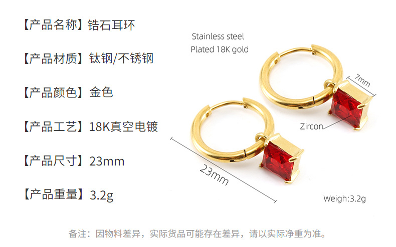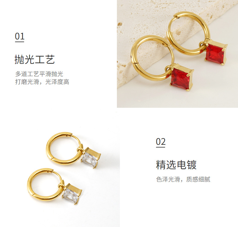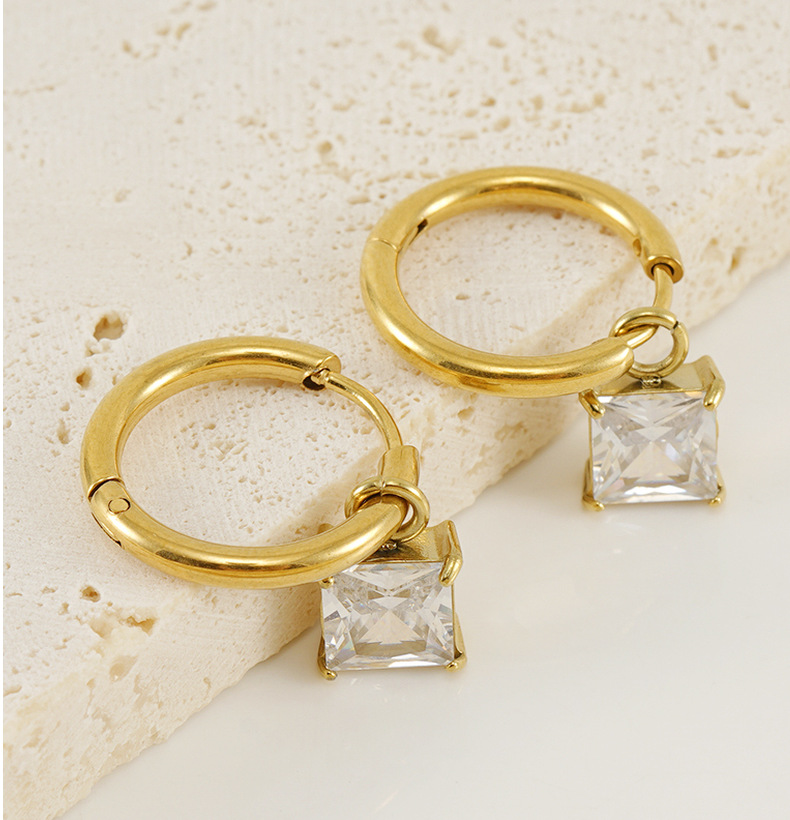 Cruz fronteriza europea y americana cuadrado ZIRCON pendientes de titanio de acero de alta calidad de diamantes incrustados pendientes 18K geométrica pendientes de acero inoxidable para las mujeres