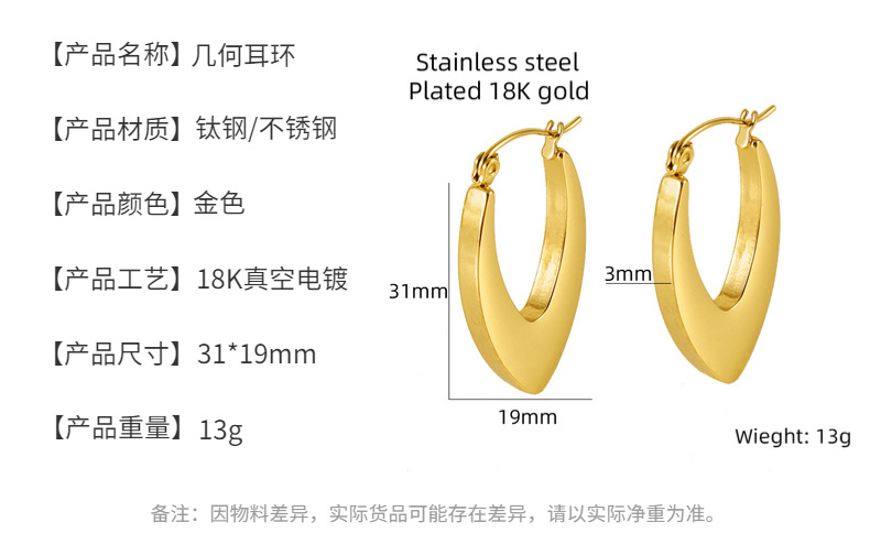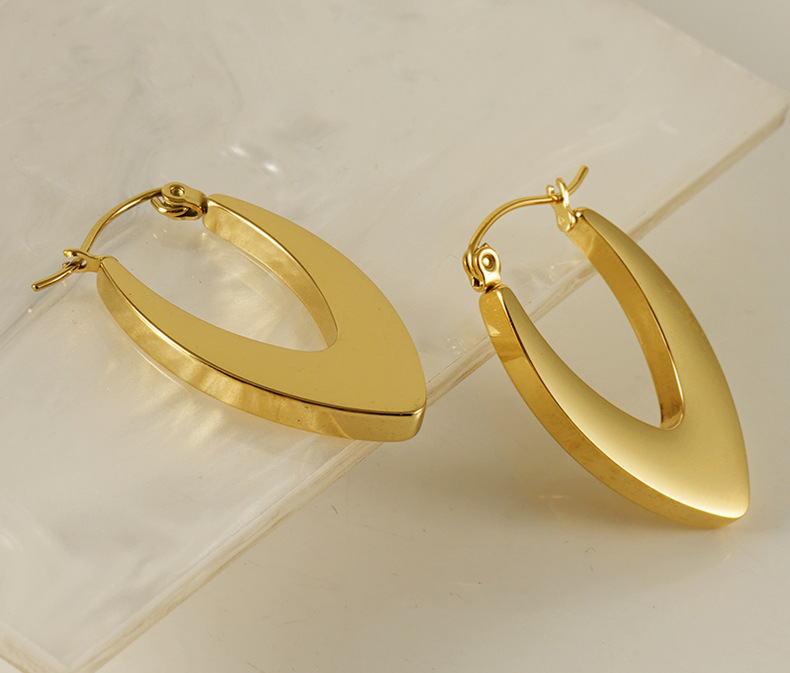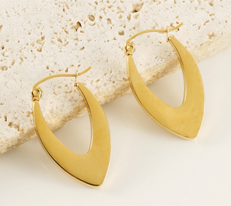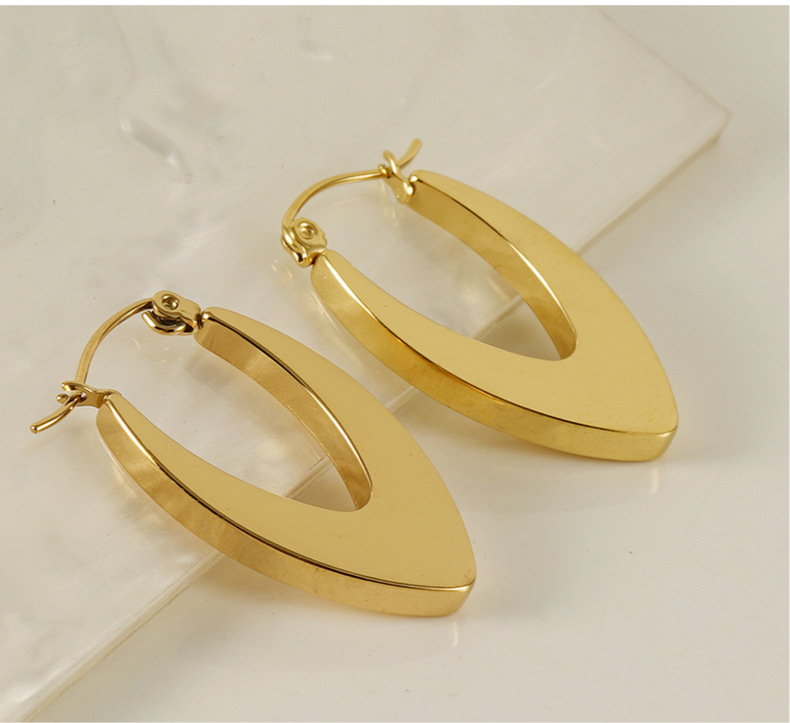 Pendientes de acero de titanio exagerados fríos de estilo europeo y americano Amazon pendientes geométricos en forma de U pendientes femeninos de acero inoxidable de 18K al por mayor