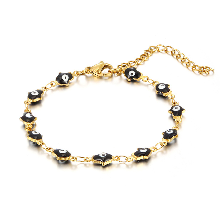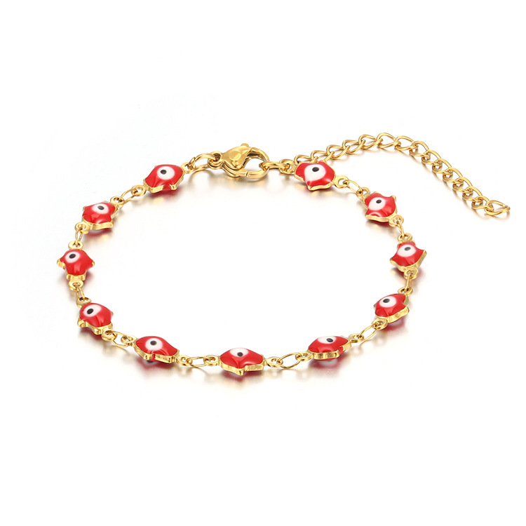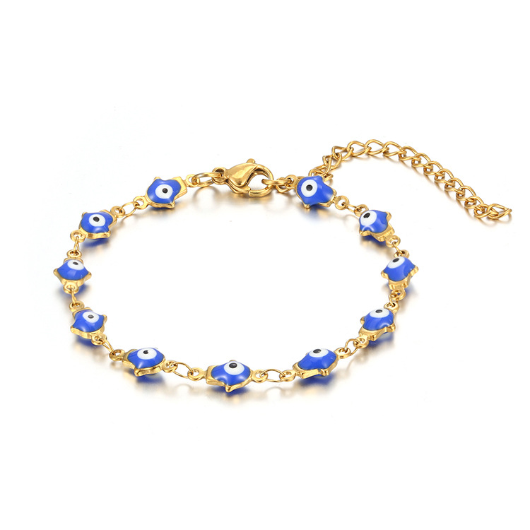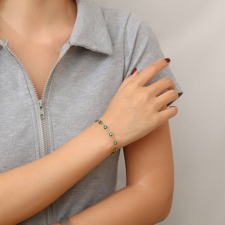 Europeo y americano turco mal de ojo color a juego pulsera de acero inoxidable hembra 18K titanio acero redondo ojo mal de ojo collar