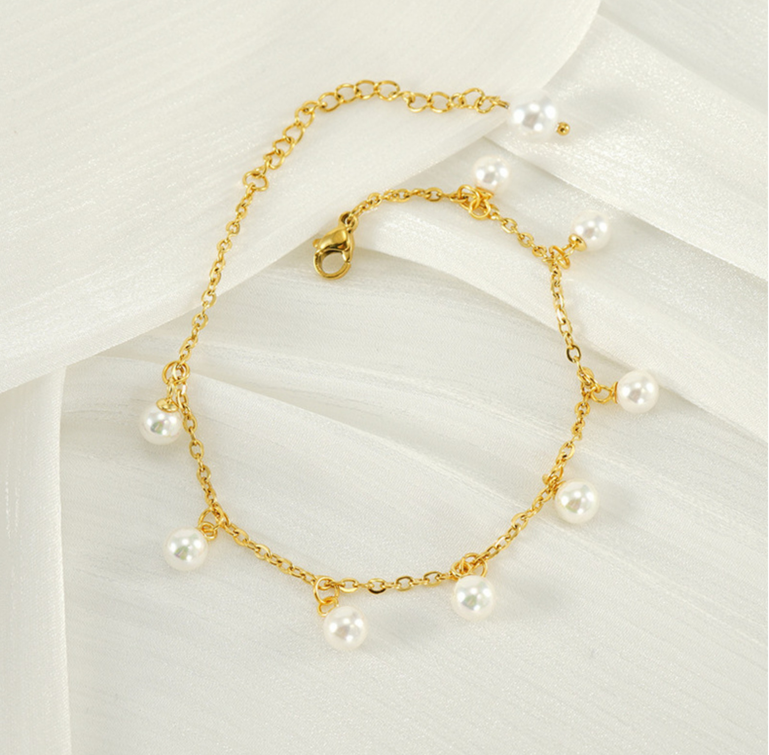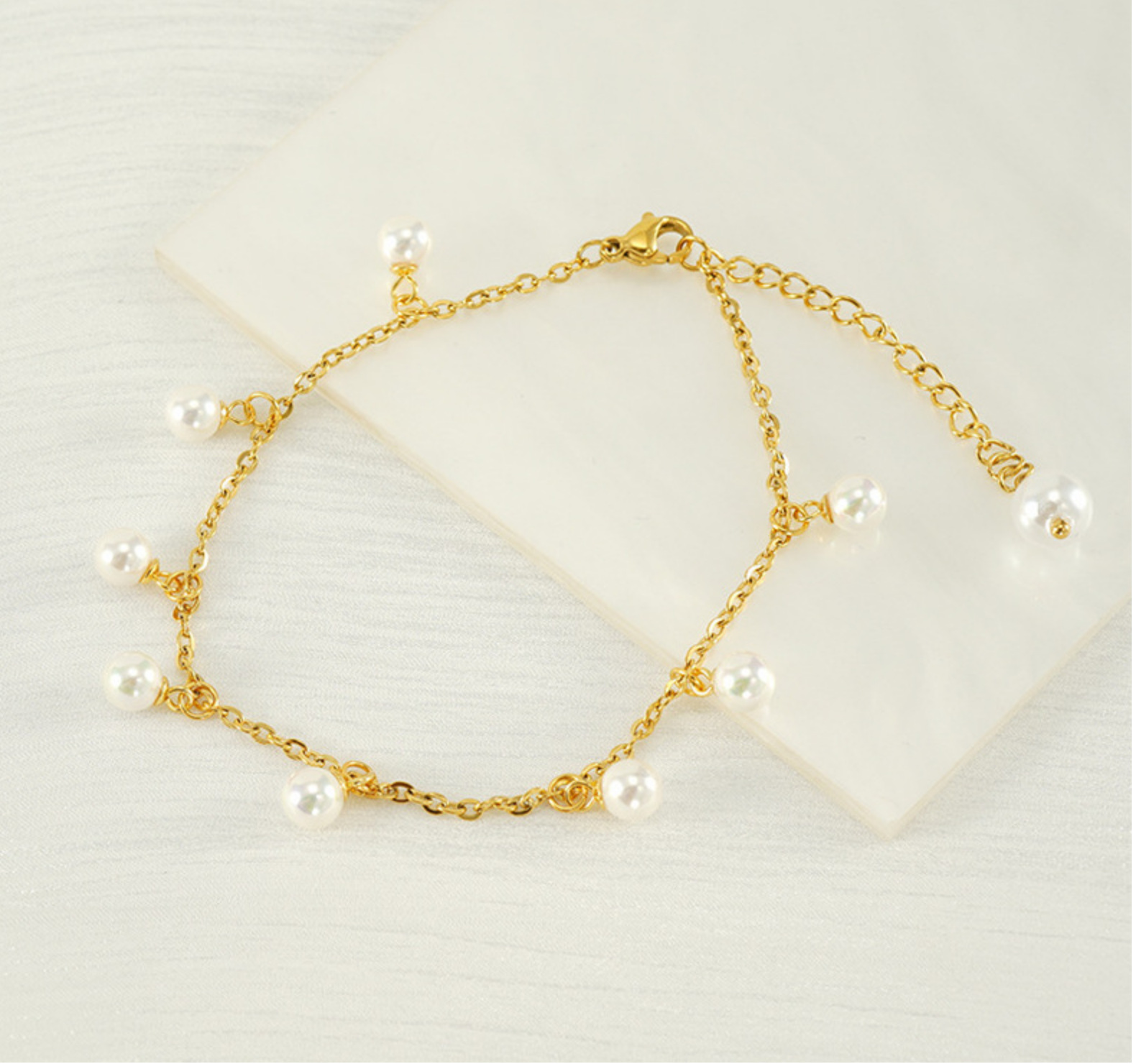 Nuevo estilo transfronterizo de moda de estilo europeo y americano de perlas de acero inoxidable de 18 quilates joyas de joyería no se desvanecen