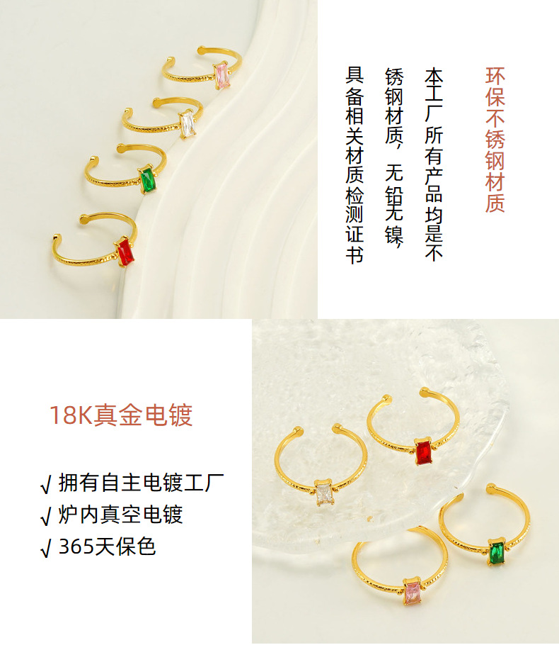 Nuevo anillo cuadrado de circón con incrustaciones de acero inoxidable transfronterizo para mujeres anillo de acero de titanio de lujo ligero versátil europeo y americano en stock al por mayor