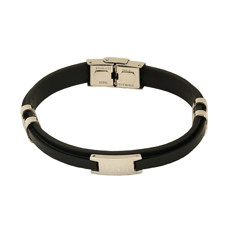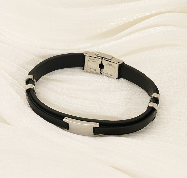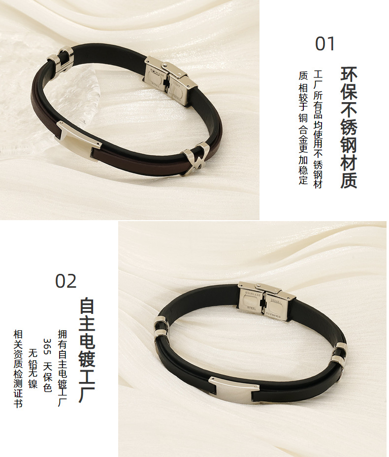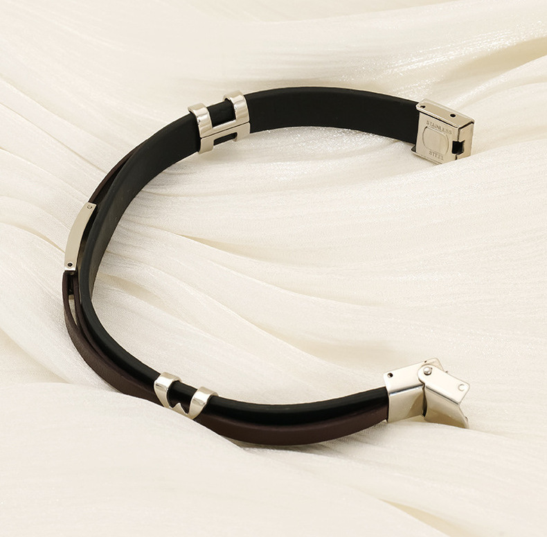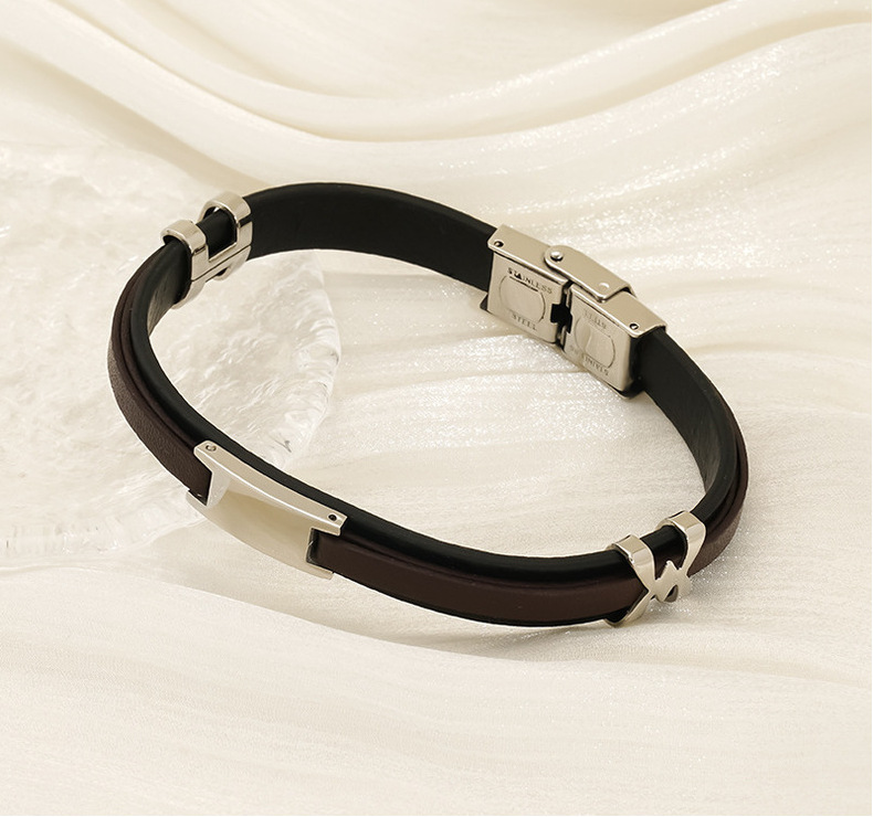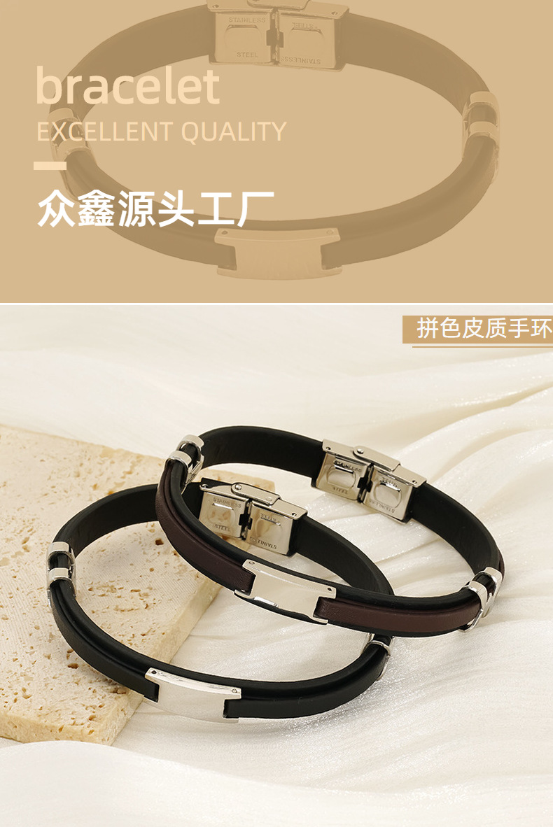 Mujeres y mujeres europeos y estadounidenses pulsera de acero inoxidable de estilo de estilo de cuero de anillo de moda tendencia de personalidad simple color combinado pulsera de acero de titanio doble capa