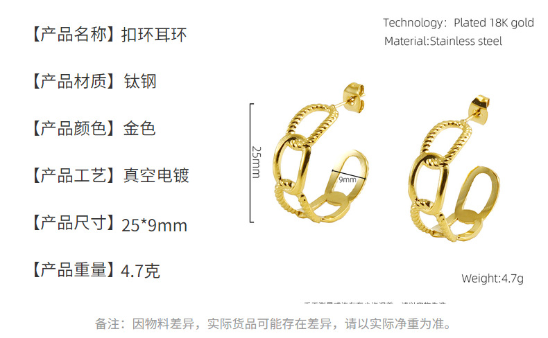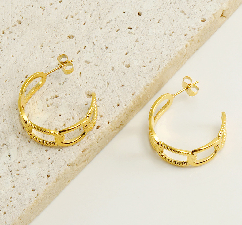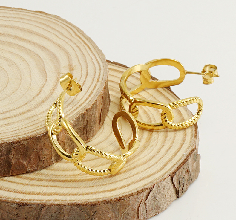 Nuevo europeo y americano transfronterizo de acero inoxidable galvanizado 18K pendientes anillo hebilla retro pendientes de diseño geométrico al por mayor