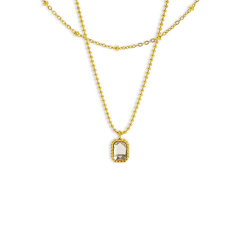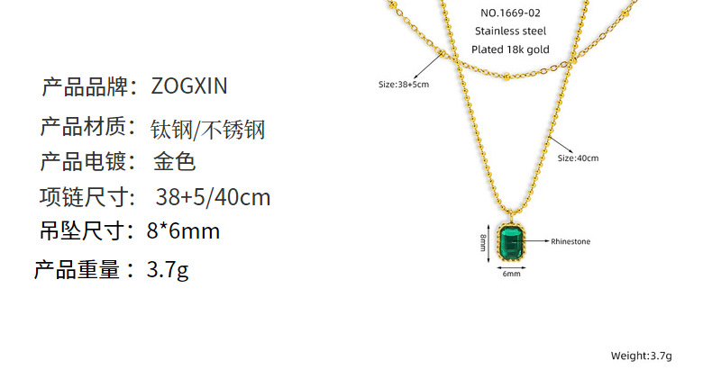 Europa y los Estados Unidos nuevo retro esmeralda zircon titanio colgante de acero inoxidable temperamento de alta calidad collar de doble capa de mujer