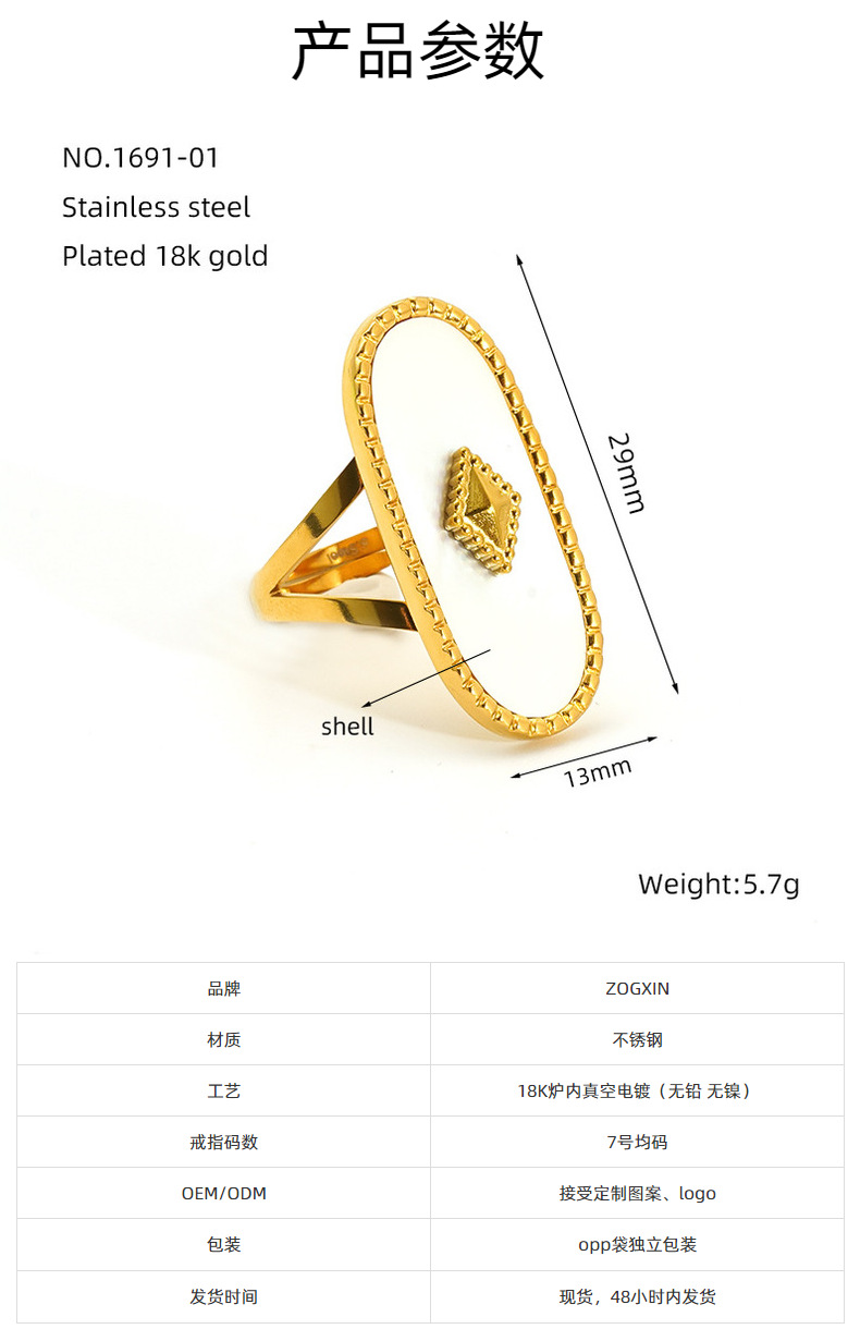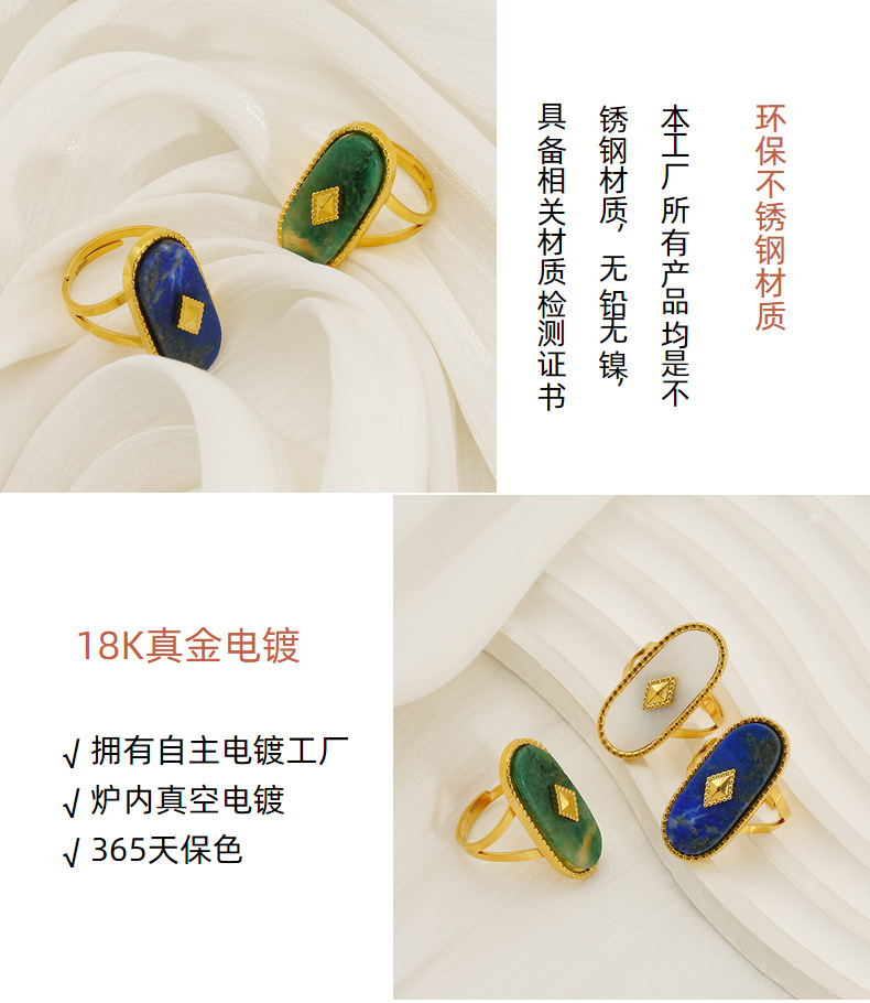 Estilo retro francés piedra natural elíptica anillo de acero inoxidable popular femenino anillo de concha natural apertura ajustable