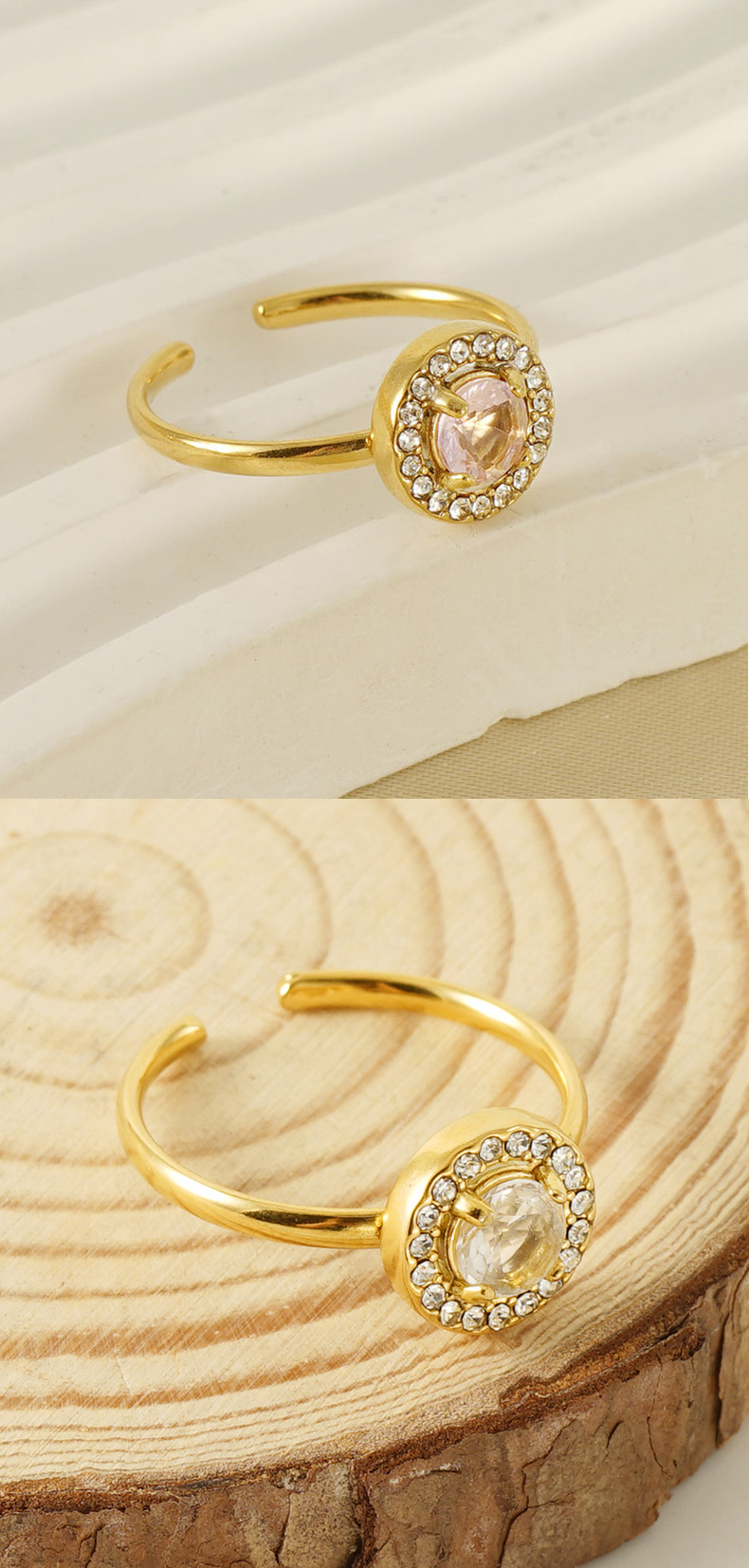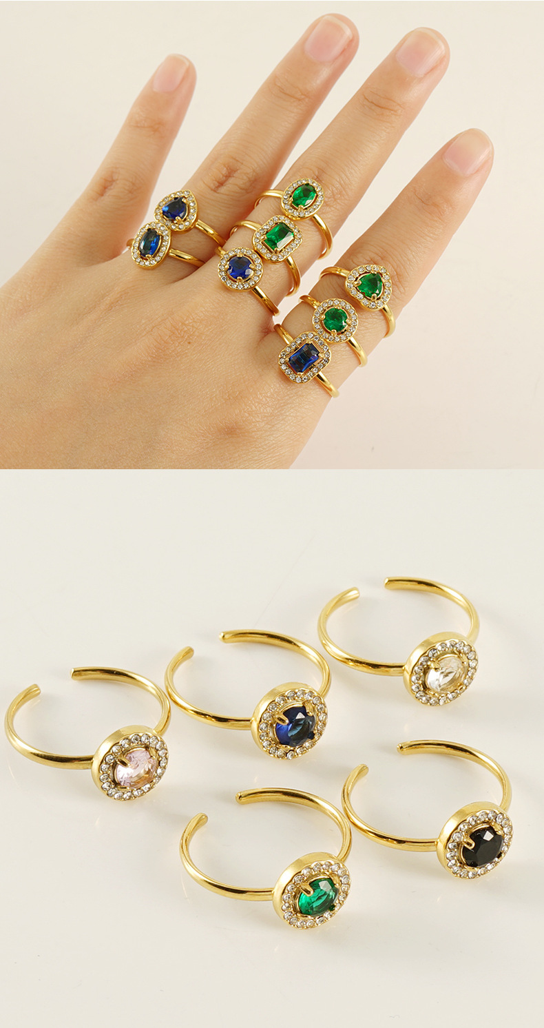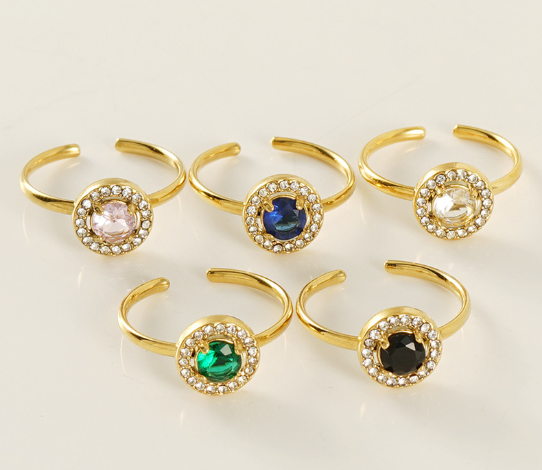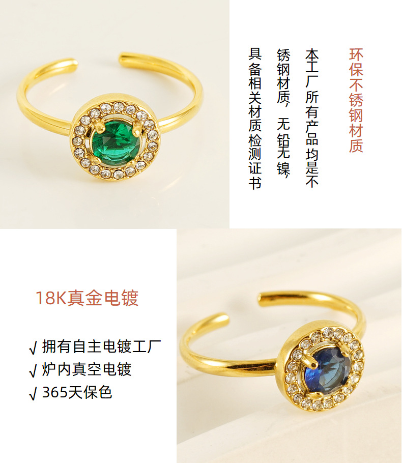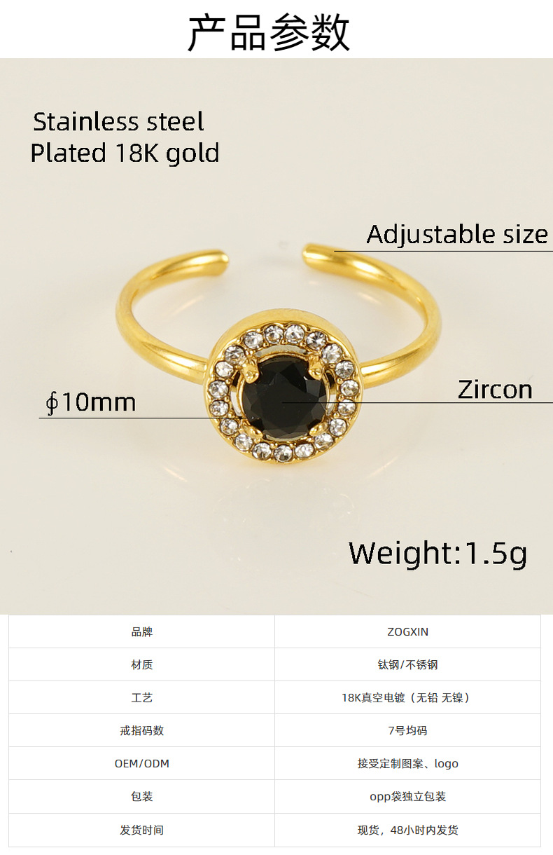 Europa y América del acero inoxidable estilo INS anillo de circón boca abierta anillo femenino 18K ajustable doble diamante anillo de acero de titanio hembra