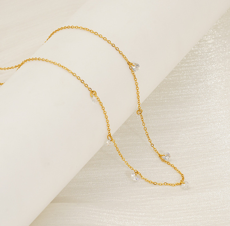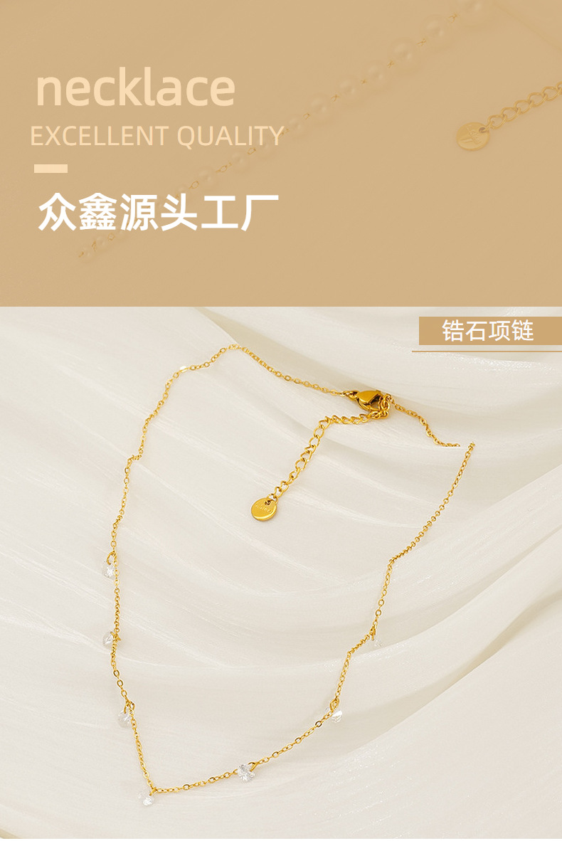 Europa y América no se desvanecen collares de moda de titanio de acero dorado collar de zircon personalidad femenina ligera lujosa cadena de zircon universal clavícula