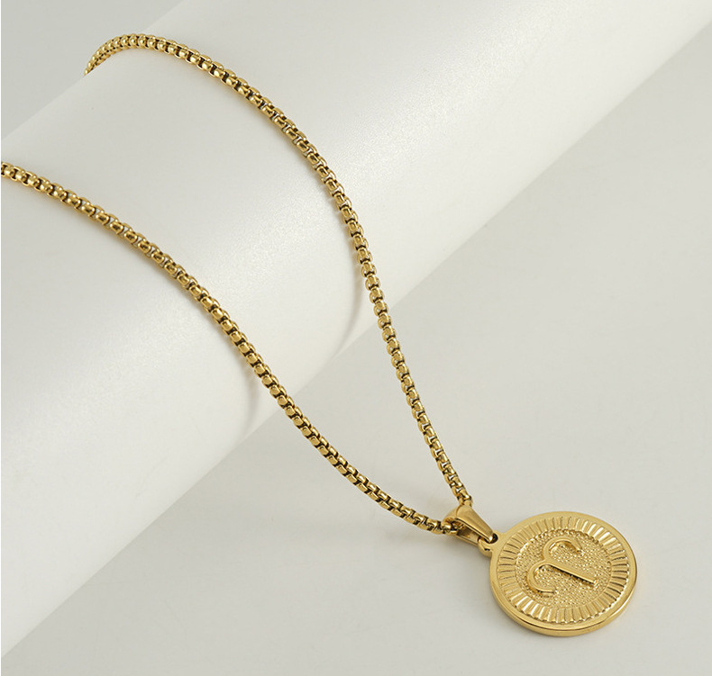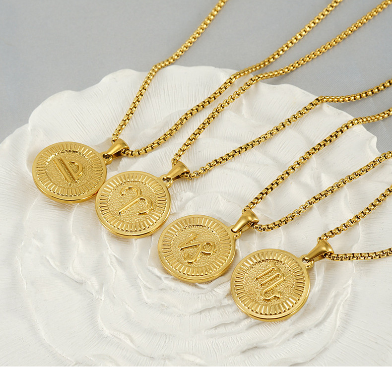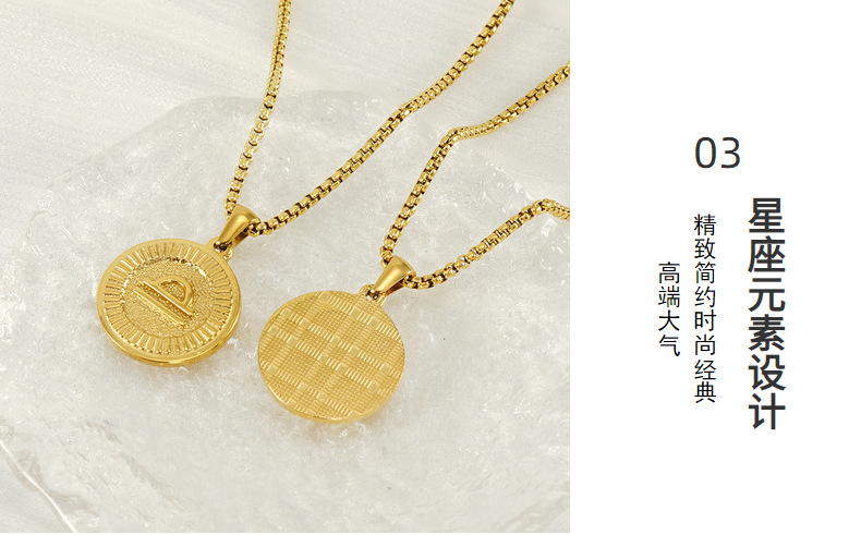 Collar transfronterizo de doce constelaciones de acero de titanio europeo y americano femenino 18K redondo tendencia de moda colgante de constelaciones de acero inoxidable clavícula
