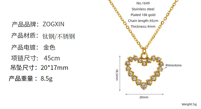 Nuevo collar de amor de acero inoxidable de lujo ligero europeo y americano, moda universal, colgante de oro en forma de corazón, cadena de clavícula para mujeres