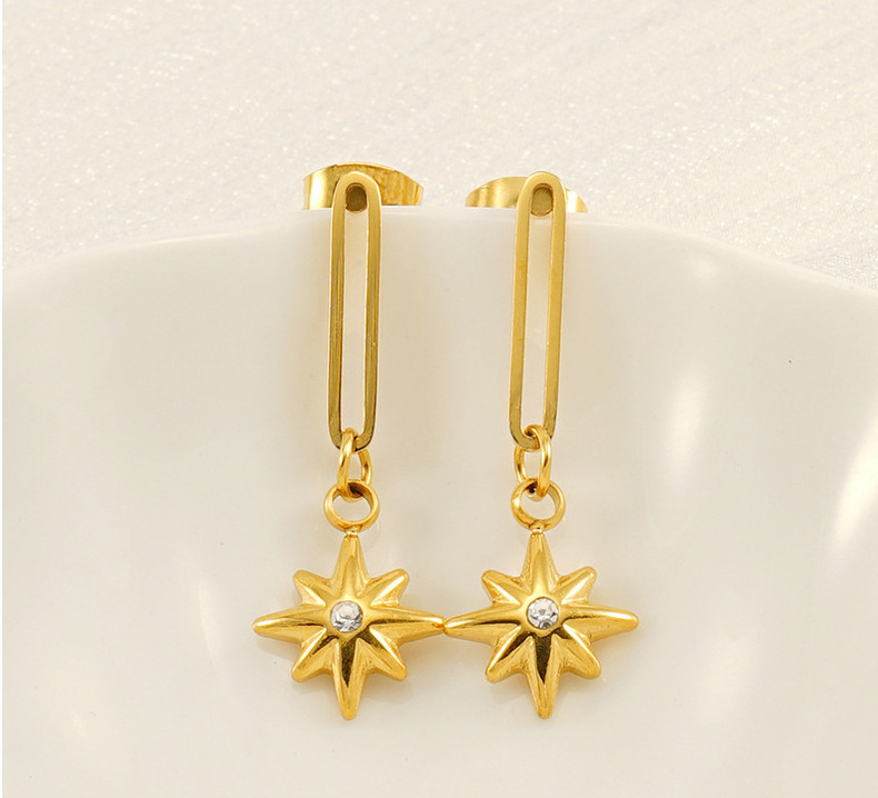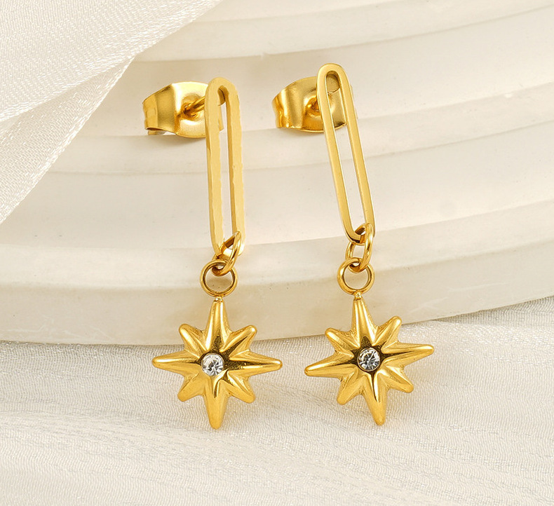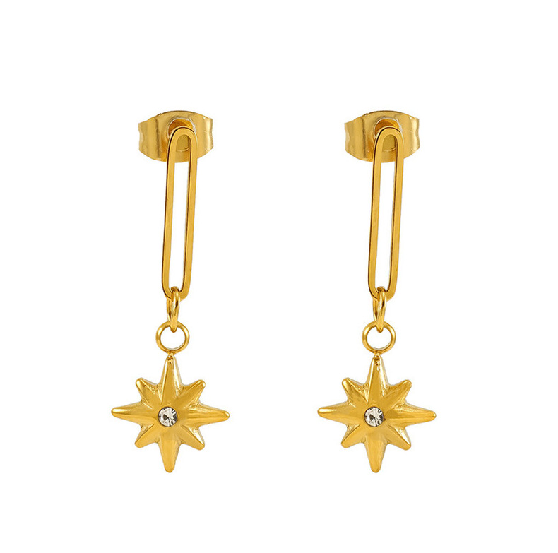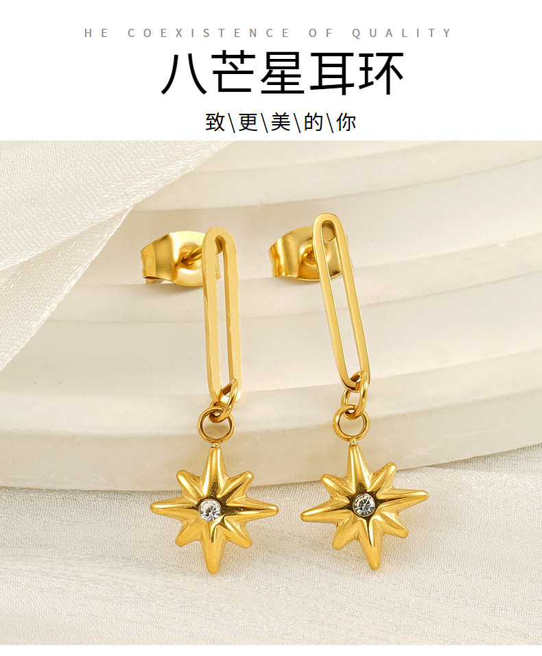Diseño de nicho Estilo francés Colgante de estrella de ocho mandos Pendientes huecos de acero de titanio Moda de oro de 18k Pendientes nuevos de todo fósforo