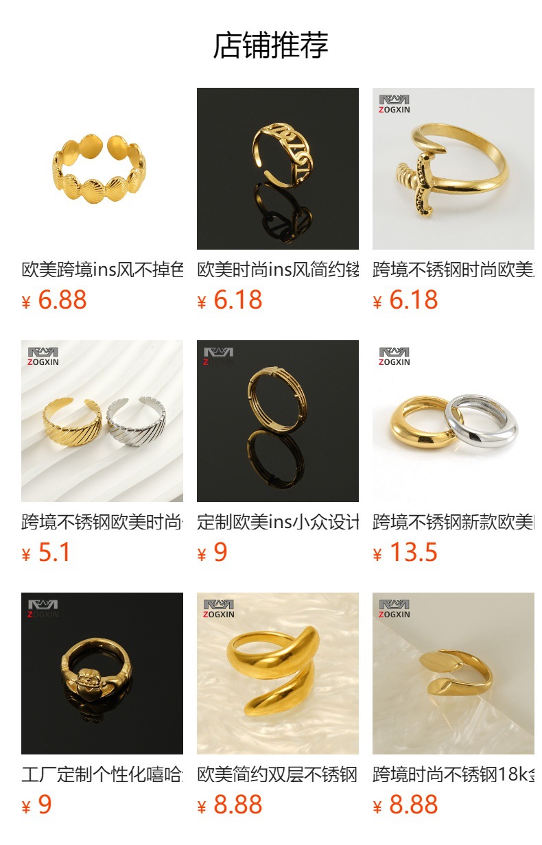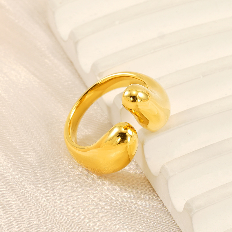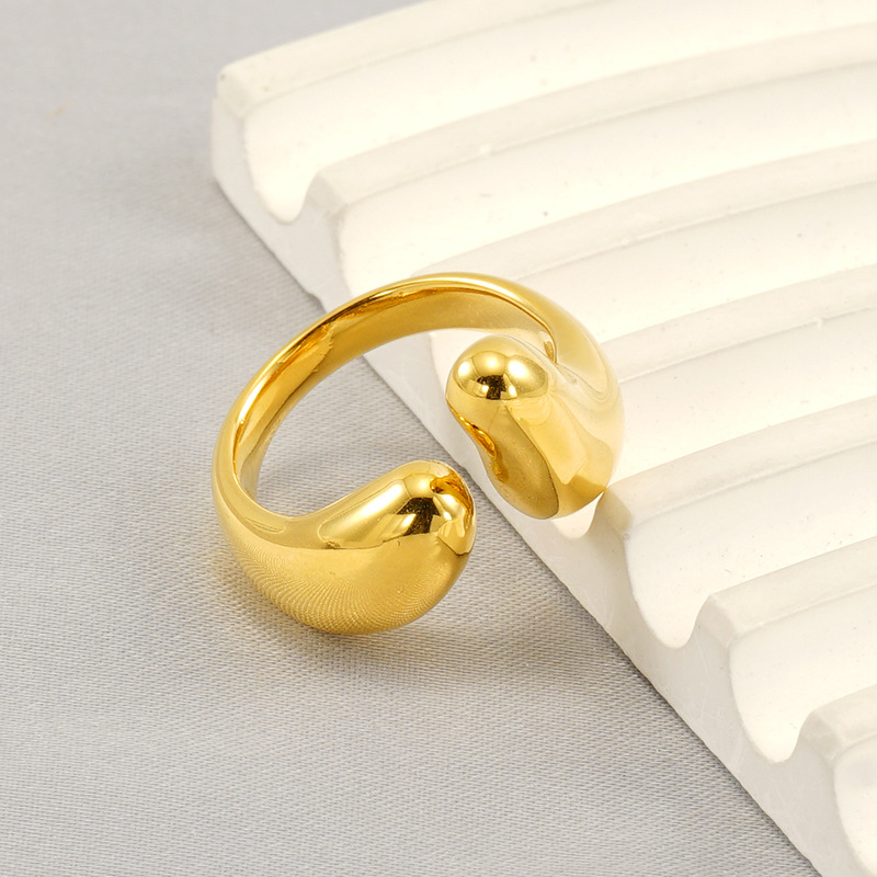 Anillo de acero inoxidable abierto de moda europea y americana transfronteriza para mujer, anillo de oro chapado de 18k de lujo ligero de nicho