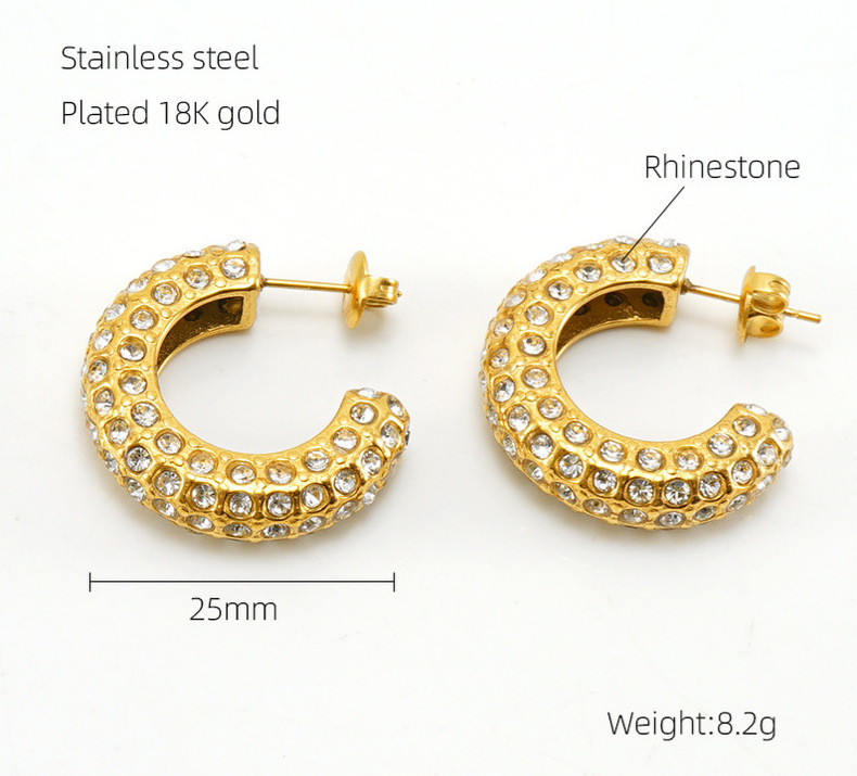 Europeo y Americano de Internet celebridad INS estilo de bambú de acero inoxidable micro-incrustaciones en forma de C Stud pendientes de oro femenino de titanio de acero de alta calidad pendientes de perlas femeninas
