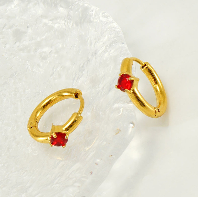 Europeo y americano INS estilo neto rojo mismo estilo pendientes de acero inoxidable hembra 18K oro plateado oreja hebilla incrustaciones color ZIRCON hembra