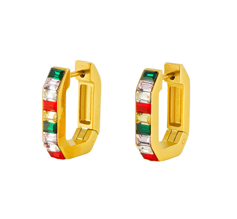 Moda geométrica europea y americana colorido ZIRCON titanio acero pendientes mujer ins estilo alto grado 18K Acero inoxidable pendientes al por mayor