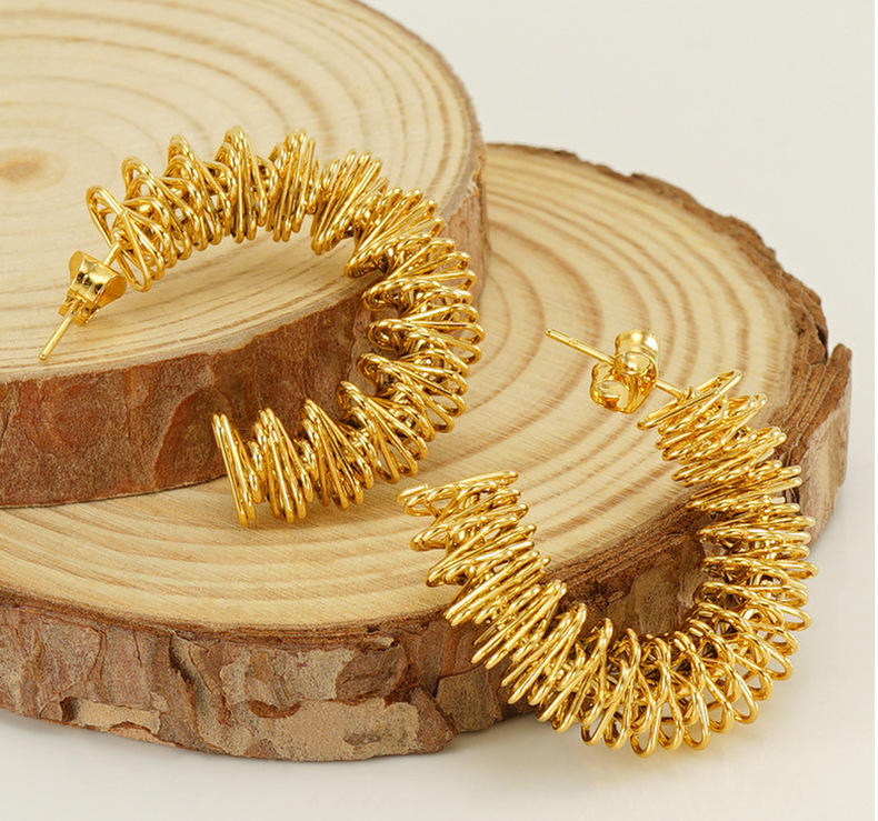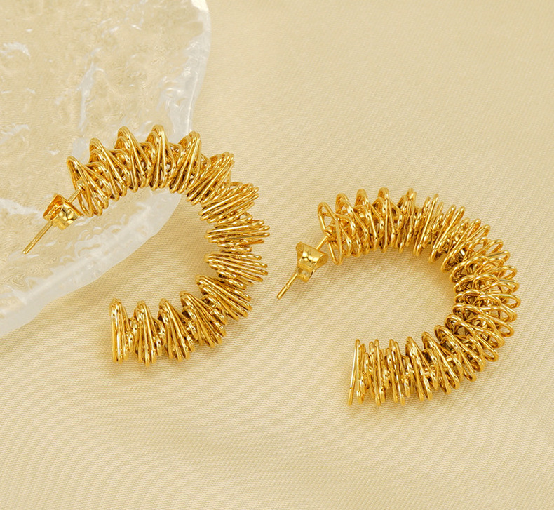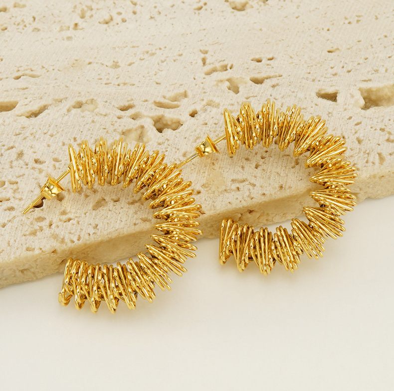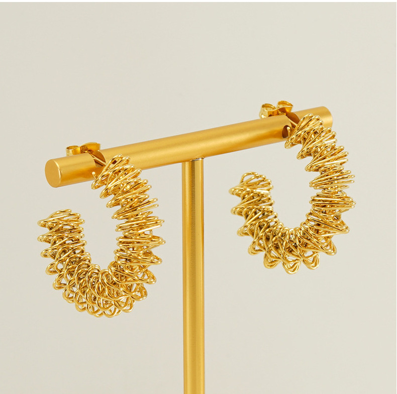 Pendientes de Primavera de acero inoxidable europeo y americano transfronterizo pendientes de anillo de acero de titanio de diseño irregular hueco de las mujeres en stock al por mayor