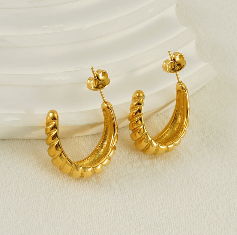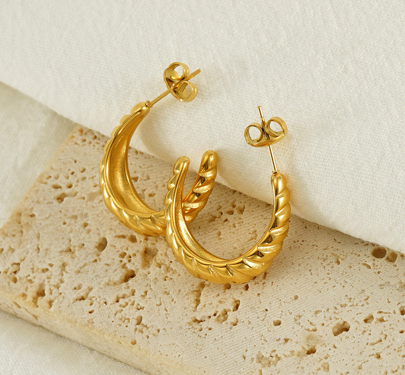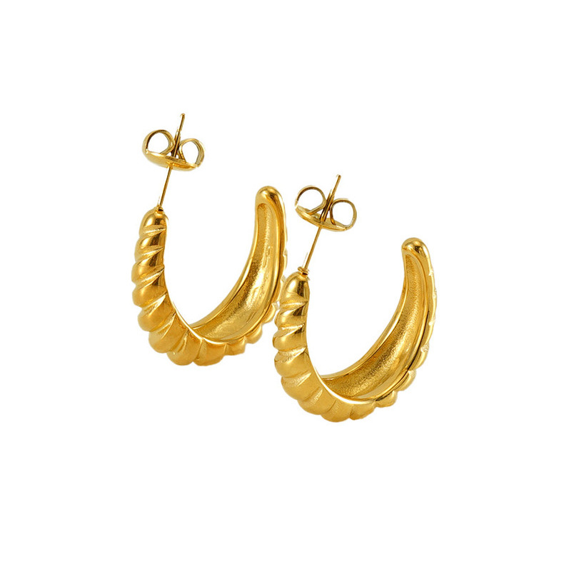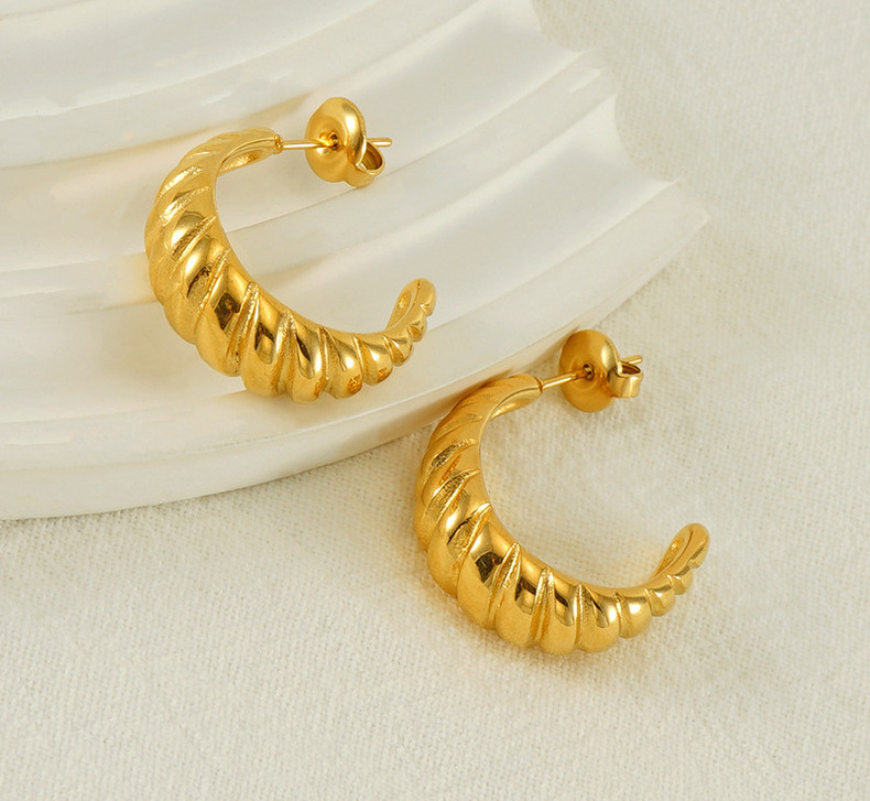 Transfronterizo europeo y americano nuevo 18K chapado en oro no desvanecimiento pendientes ins moda de alto grado retro espiral a rayas pendientes para las mujeres