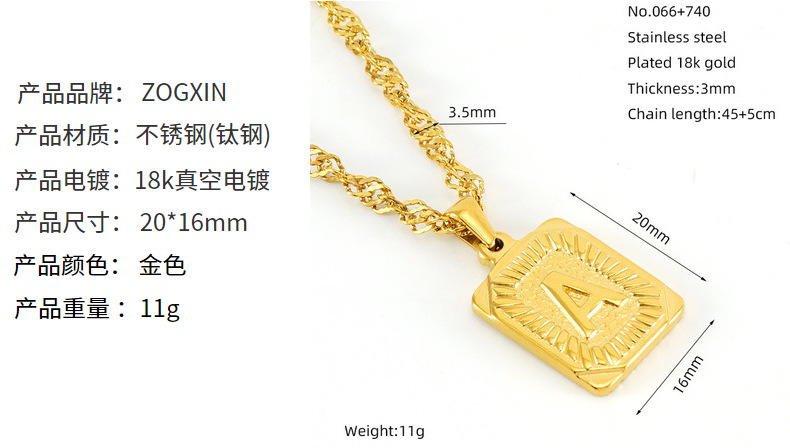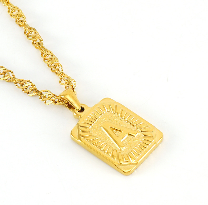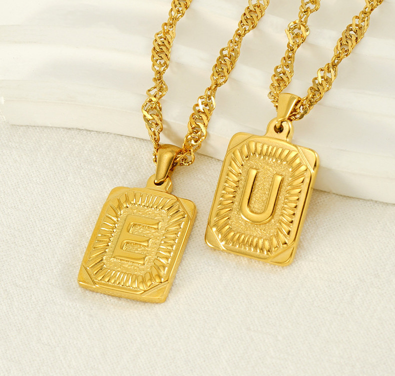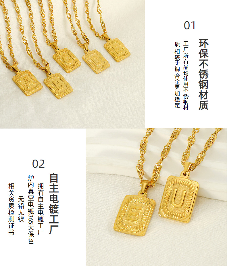 Collar de cadena de onda de agua cuadrada de acero inoxidable europeo y americano transfronterizo moda de mujer Luz de lujo todo fósforo titanio acero 26 letra colgante