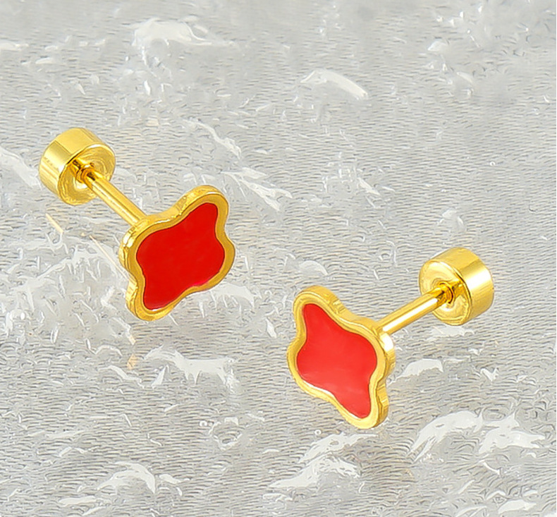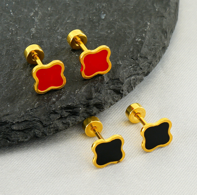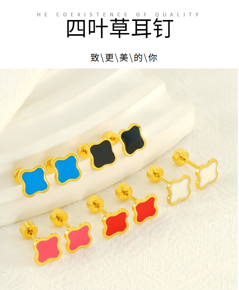 Pendientes de Acero de Titanio con Diseño de Trébol de Cuatro Hojas Estilo Francés Minimalista, Multicolores, Antidesvanecimiento, Mini Pendientes de Alta Gama para Mujer