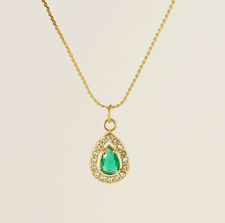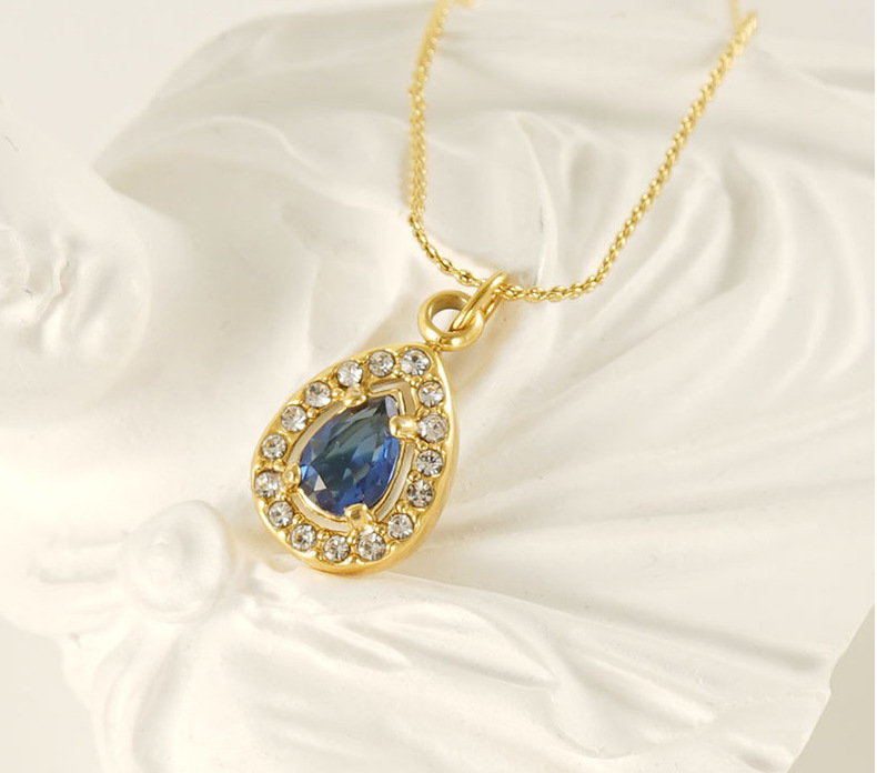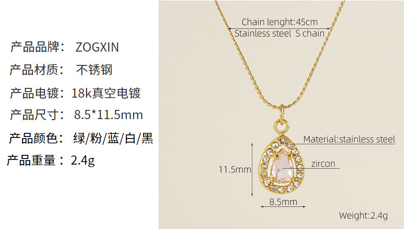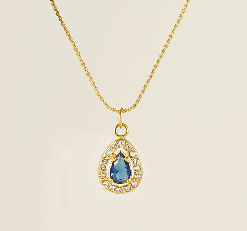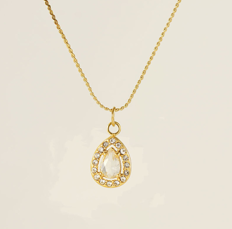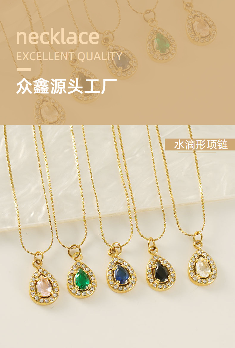 Transfronterizo europeo y americano estilo simple con incrustaciones de circón en forma de gota colgante hembra 18k chapado en oro de acero inoxidable collar femenino al por mayor