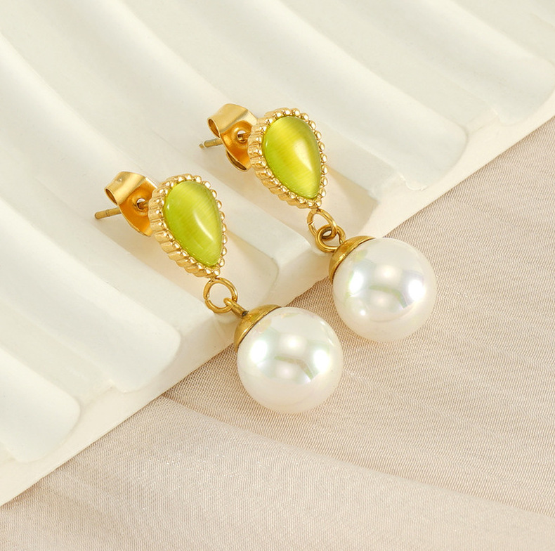 Moda nuevo acero inoxidable francés perla pendientes simple todo fósforo temperamento titanio acero ópalo pendientes en stock mujeres