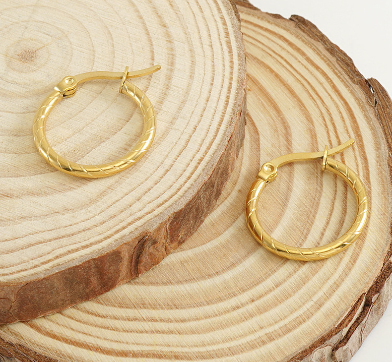Pendientes redondos de acero titanio europeo y americano para mujer, pendientes de clip de acero inoxidable 18k simples y de alta gama, pendientes de aro al por mayor