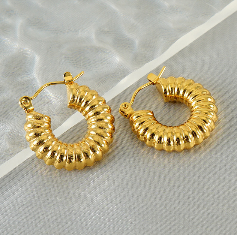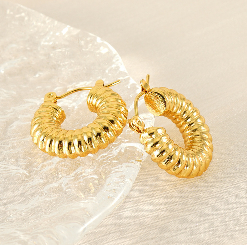 Pendientes geométricos de estilo ins simples de moda europea y americana chapados en oro de 18 quilates en espiral de acero inoxidable fabricantes