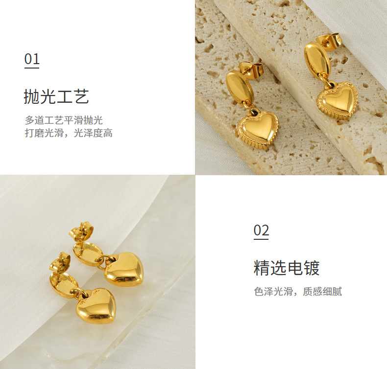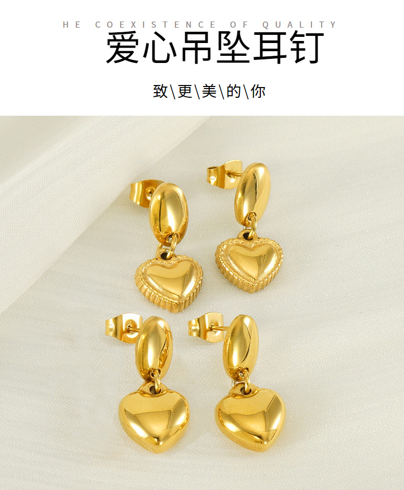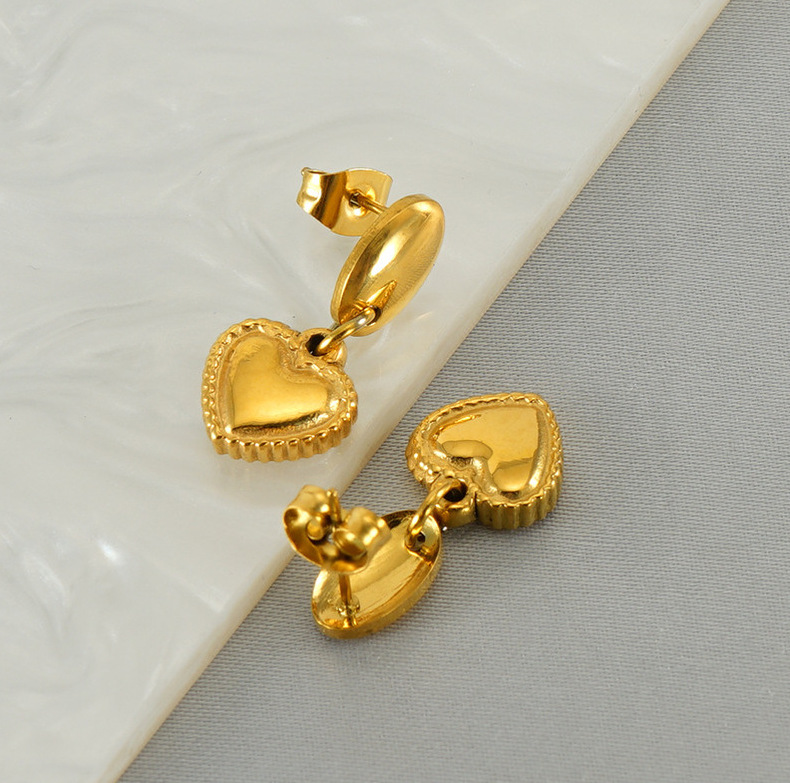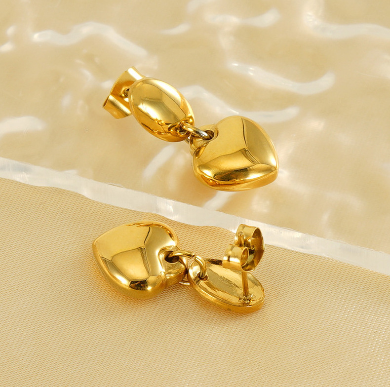Moda europea y americana transfronteriza, pendientes de acero de titanio de amor, pendientes de acero inoxidable chapado en oro de 18 quilates, lujo ligero femenino, sentido de alta gama