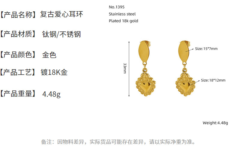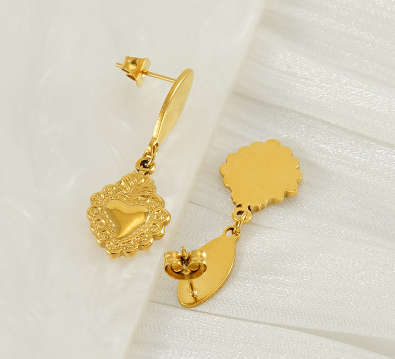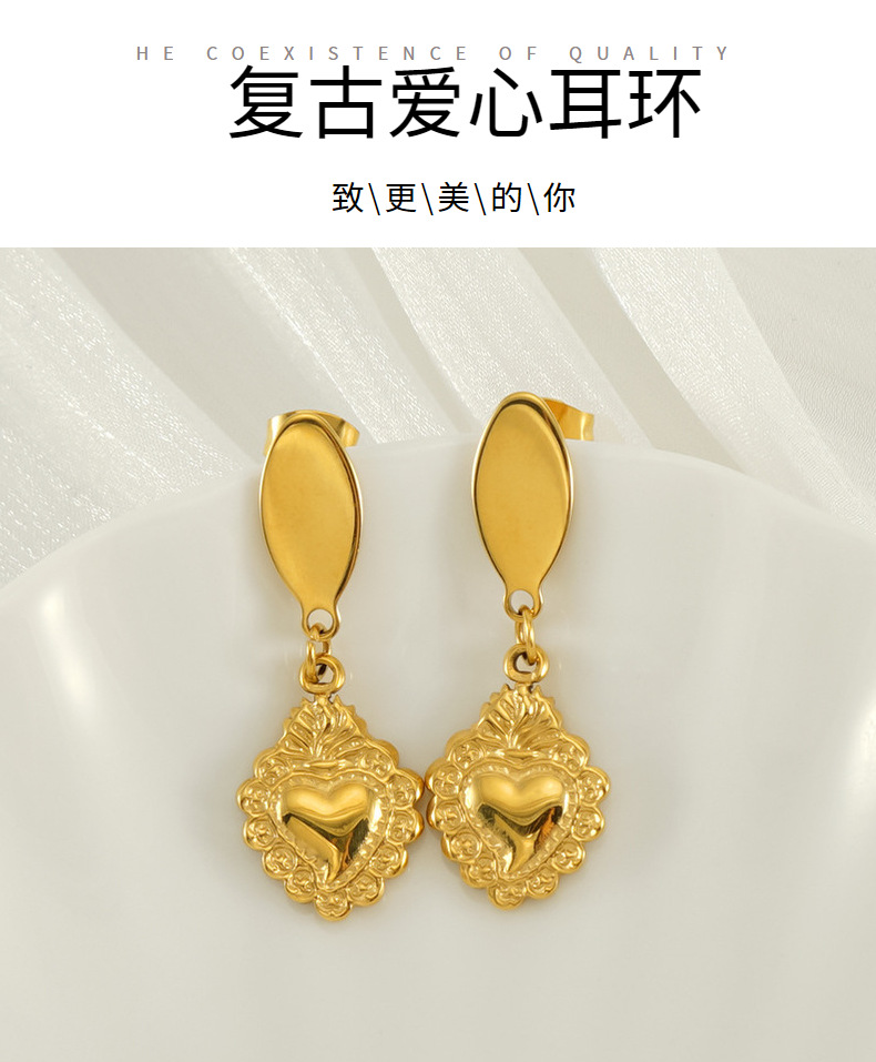 Moda europea y americana nuevo estilo acero titanio amor aretes chapados en oro Pendientes retro en forma de corazón sin decoloración al por mayor mujeres